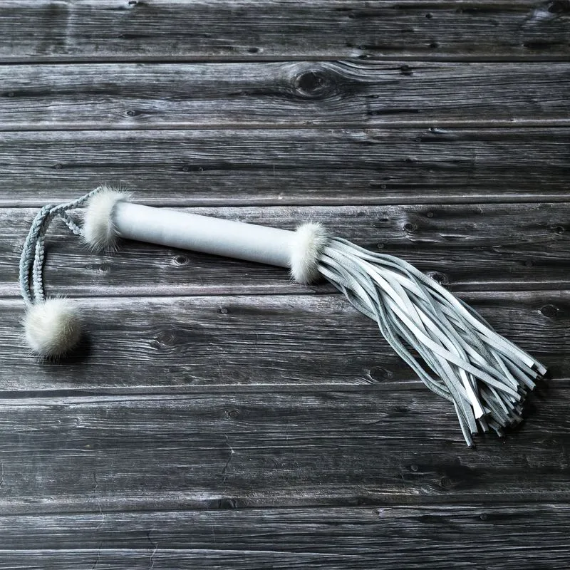 Идеальный вариант для мягких наказаний. За счёт материала овечьей кожи, плетка не приносит сильных болевых ощущений, даже при значительном ударе. Обтянута натуральной мягкой кожей, на краях мех норки. На ручке меховой помпон, который делает дизайн плётки более игривым. Упаковывается в специальный деревянный футляр.