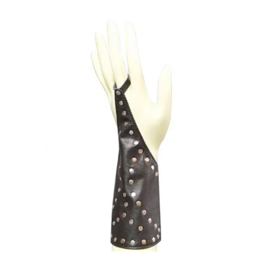 Эти короткие митенки от компании Подиум изготовлены из мягкой кожи черного цвета. Они декорированы блестящими металлическими клепками, придающими им более дерзкий вид. Данная модель смотрится очень эффектно и стильно, поэтому станет отличным дополнением практически любого Вашего интимного костюма. Такой красивый аксессуар великолепно подойдет для БДСМ-развлечений!