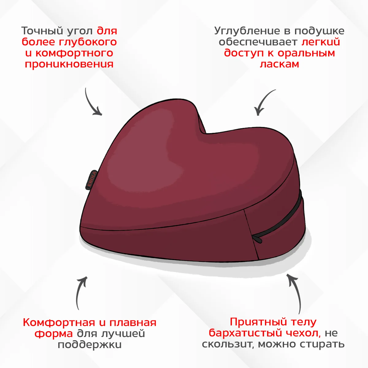 Эротическая подушка Сердце от Erola — это ваш надежный помощник в любовных играх, который откроет новые возможности для совместного времяпрепровождения и станет незаменимым элементом в вашей спальне.