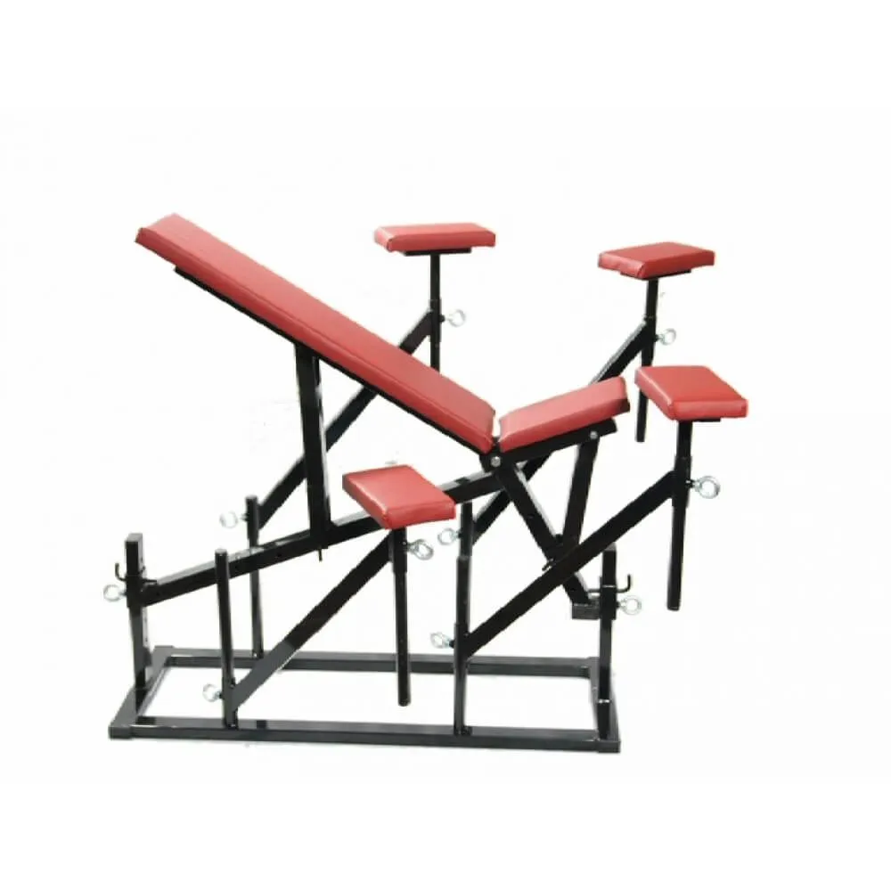 - Партнер, лежащий на скамье, находится в максимально расслабленном состоянии. Это достигается за счет кронштейнов, которые берут на себя всю мышечную нагрузку рук и ног.
