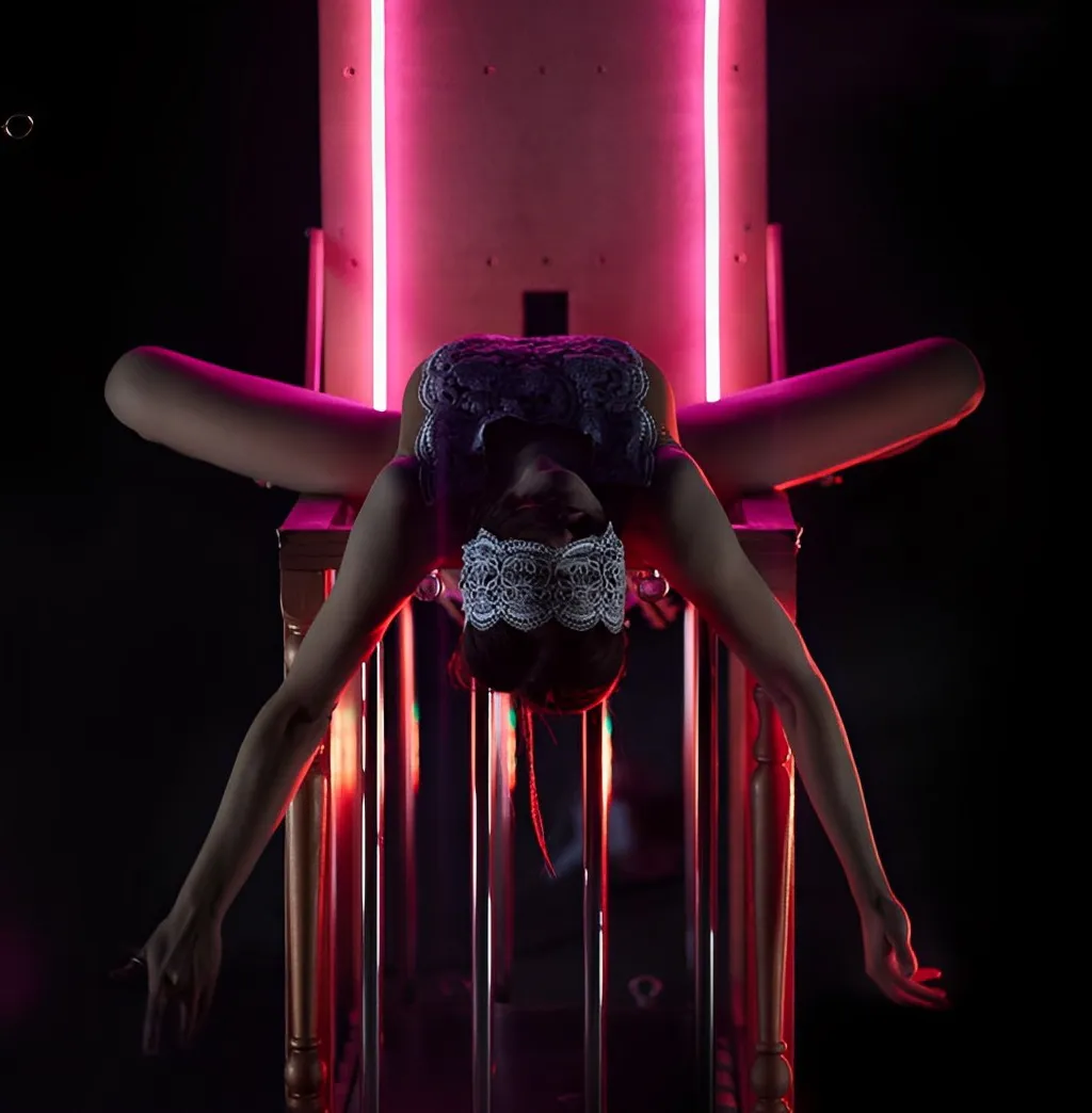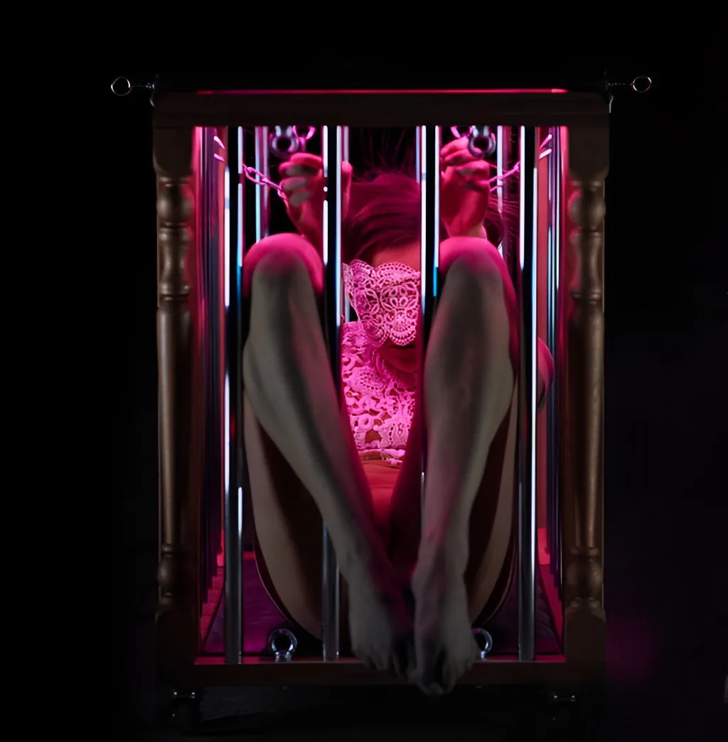 Мобильная клетка с внутренней неоновой световой иллюминацией.