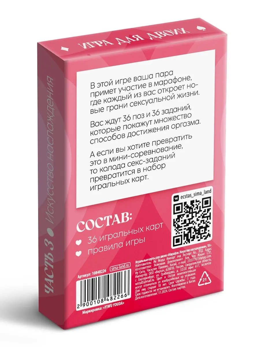 «Марафон. Искусство наслаждения» – это увлекательная настольная игра для взрослых пар, которая открывает новые горизонты в отношениях и делает совместный досуг незабываемым!