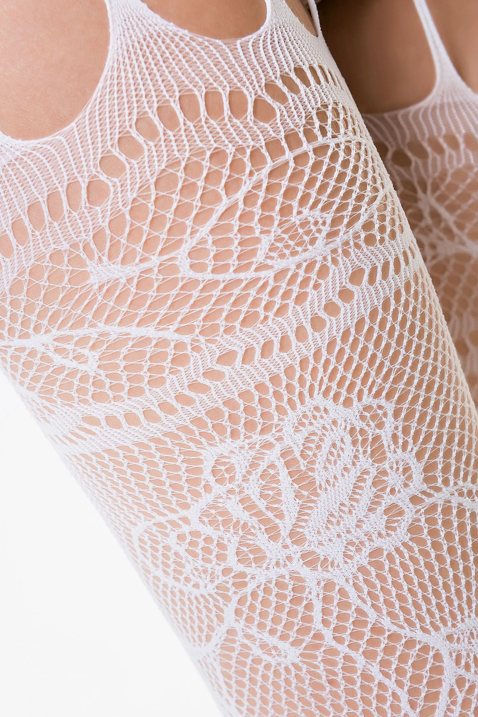 Эротический костюм-сетка, выполненный в виде имитации боди и чулочков, создан для того, чтобы покорять. Боди из тонкой нежной сеточки с кружевным цветочным узором отлично садится по фигуре, скрывая все лишнее и выгодно подчеркивая Ваши достоинства. Невесомые сетчатые чулки декорированы оригинальным узором. А открытость интимных зон делает этот костюм идеальным для сексуальных игр с Вашим партнером.