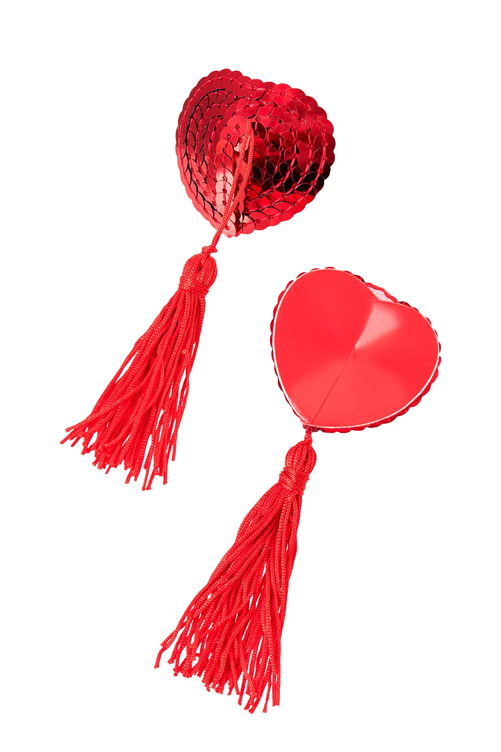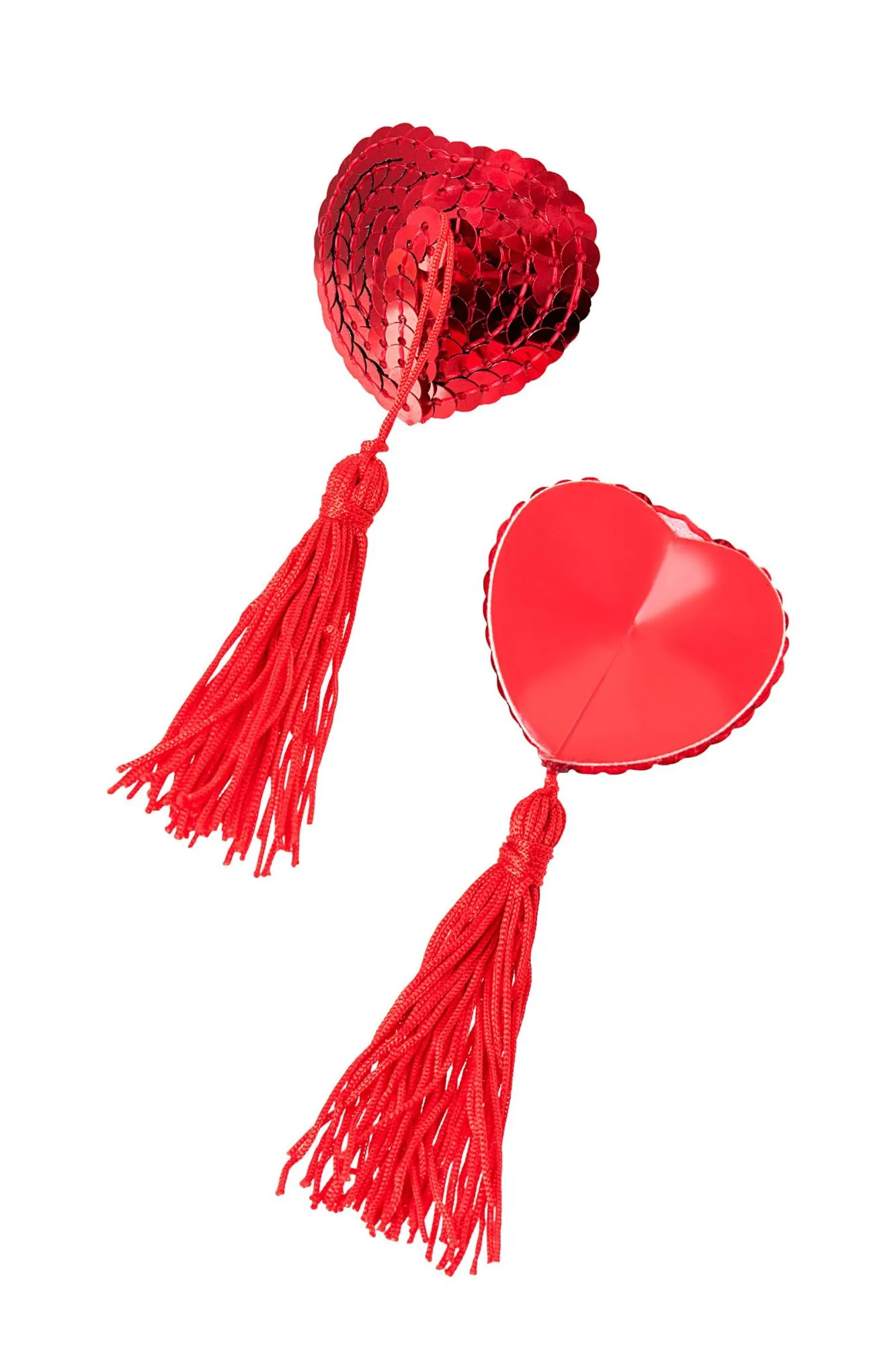 Наклейки на соски многоразовые. Однотонные. Конус выполнен из полиуретана, внутри — слой силиконового геля. Декор: пайетки, текстильная кисточка. Размер основания: 5 см. Длина кисти: 11 см. Наклеивать на чистую кожу без следов косметических средств. Снимать осторожно. После использования внутреннюю сторону промыть теплой водой. Хранить, изолировав клейкий слой пленкой или приклеив к стеклянной поверхности (зеркалу). Не использовать при гиперчувствительности к силикону, нарушениях пигментации или повреждениях кожи груди.