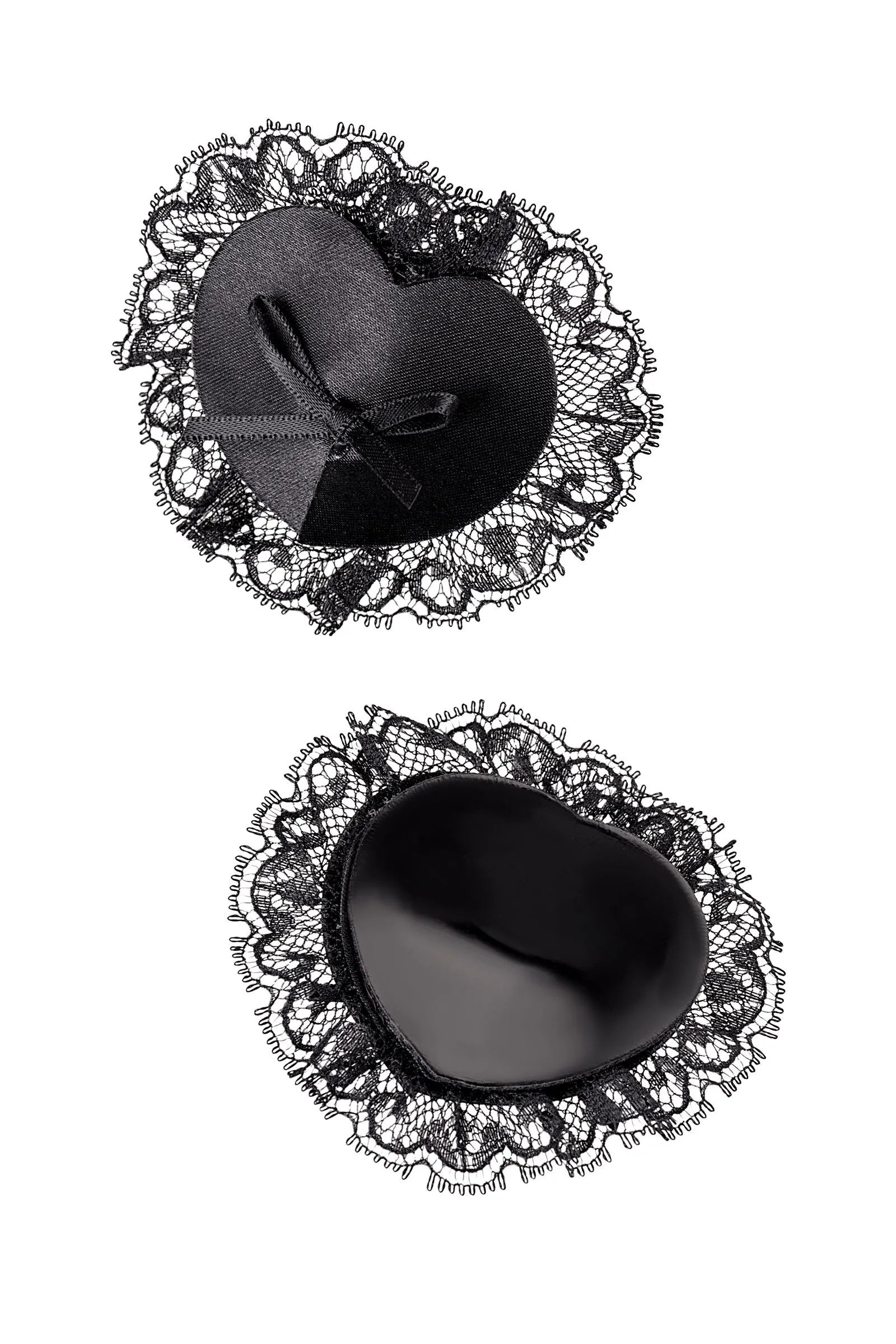 Наклейки на соски многоразовые. Однотонные. Конус выполнен из полиуретана, внутри — слой силиконового геля. Декор: сатин, кружево, сатиновые бантики. Размер основания: 5 см. Наклеивать на чистую кожу без следов косметических средств. Снимать осторожно. После использования внутреннюю сторону промыть теплой водой. Хранить, изолировав клейкий слой пленкой или приклеив к стеклянной поверхности (зеркалу). Не использовать при гиперчувствительности к силикону, нарушениях пигментации или повреждениях кожи груди.