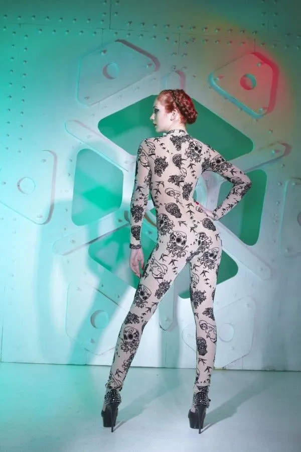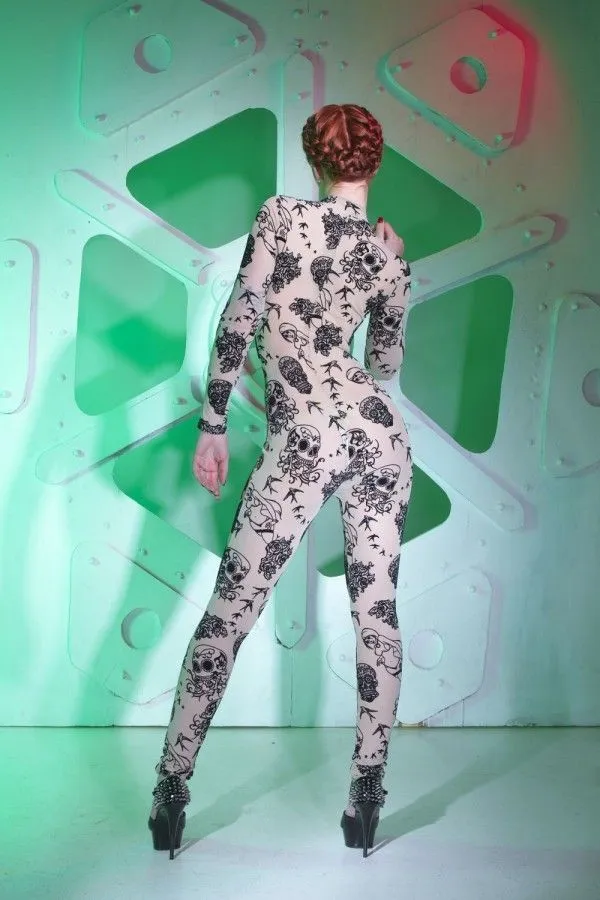 Комбинезон от французского модельера Patrice Catanzaro добавит Вашему образу страстности и сексуальности. Он отлично облегает фигуру, подчеркивая все ее достоинства и плавные изгибы. Комбинезон выполнен из прозрачного материала и декорирован узорами, напоминающими элементы татуировки. На молнии есть несколько ползунков, которые позволят Вам сделать отверстия в нужных местах. Благодаря подобной немного провокационной задумке, Вы сможете сами определять когда и где Ваш избранник сможет насладиться видом Вашего обнаженного тела.