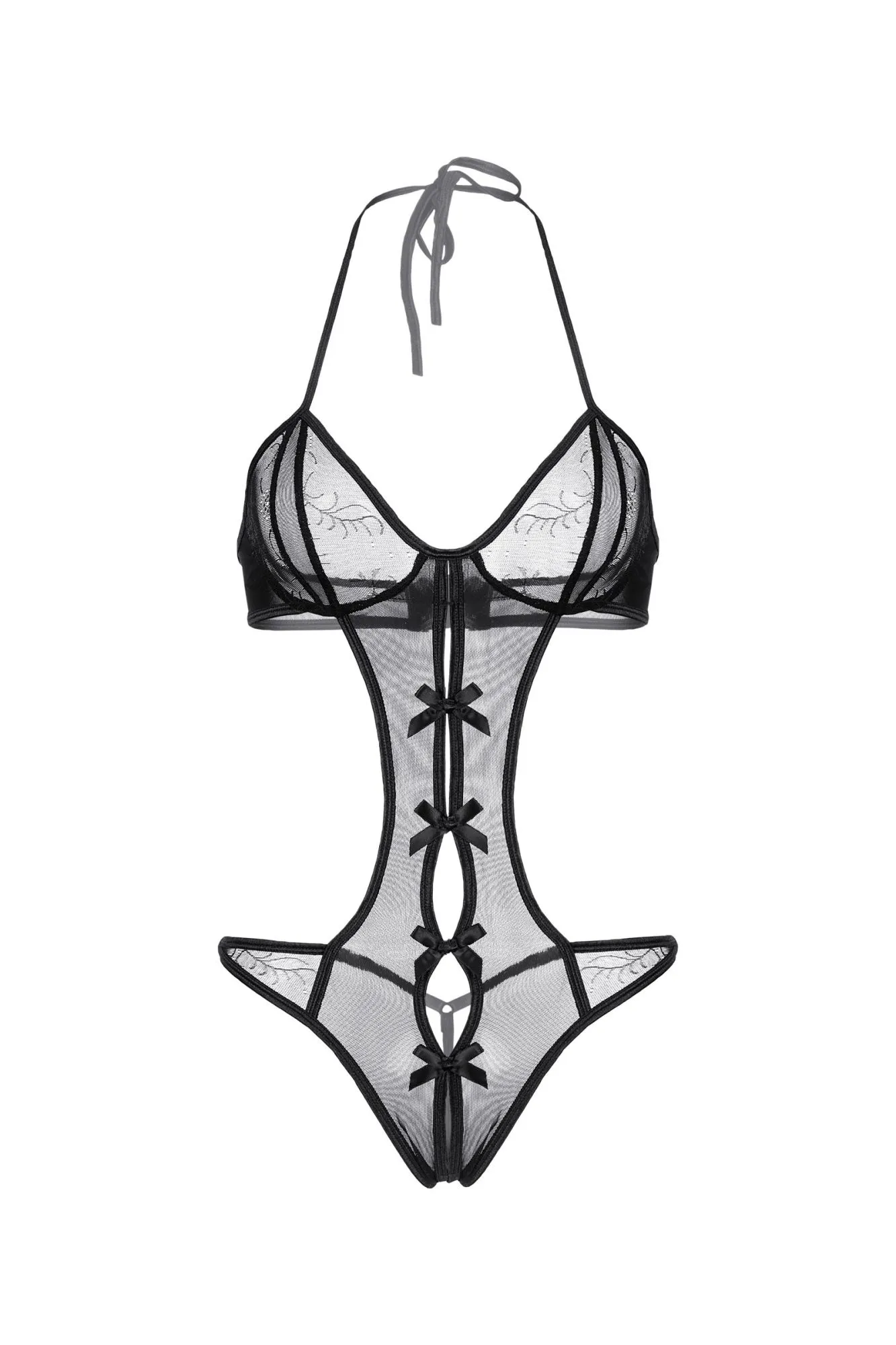 Соблазнительное мягкое боди-монокини Vegas от Candy Girl® - идеальный выбор для жаркой ночи. Боди выполнено из эластичной сетки с кружевными вставками и удачно создает эффект обнаженного тела благодаря большому количеству открытых участков. Лиф соединяется с трусиками полоской ткани, которая зрительно вытягивает силуэт. Пикантный продольный вырез дополнен сатиновыми бантиками до самых интимных мест. Завязки на шее, тройная застежка "крюк-петля" сзади и регулируемые боковые перемычки на бедрах обеспечивают идеальную посадку по фигуре.