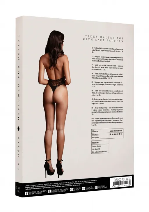 Strappy Lace Teddy - боди с бретелькой через шею. Дизайн выполнен в виде кружева, дополненого тонкими полосками, подчеркивающими линии тела.