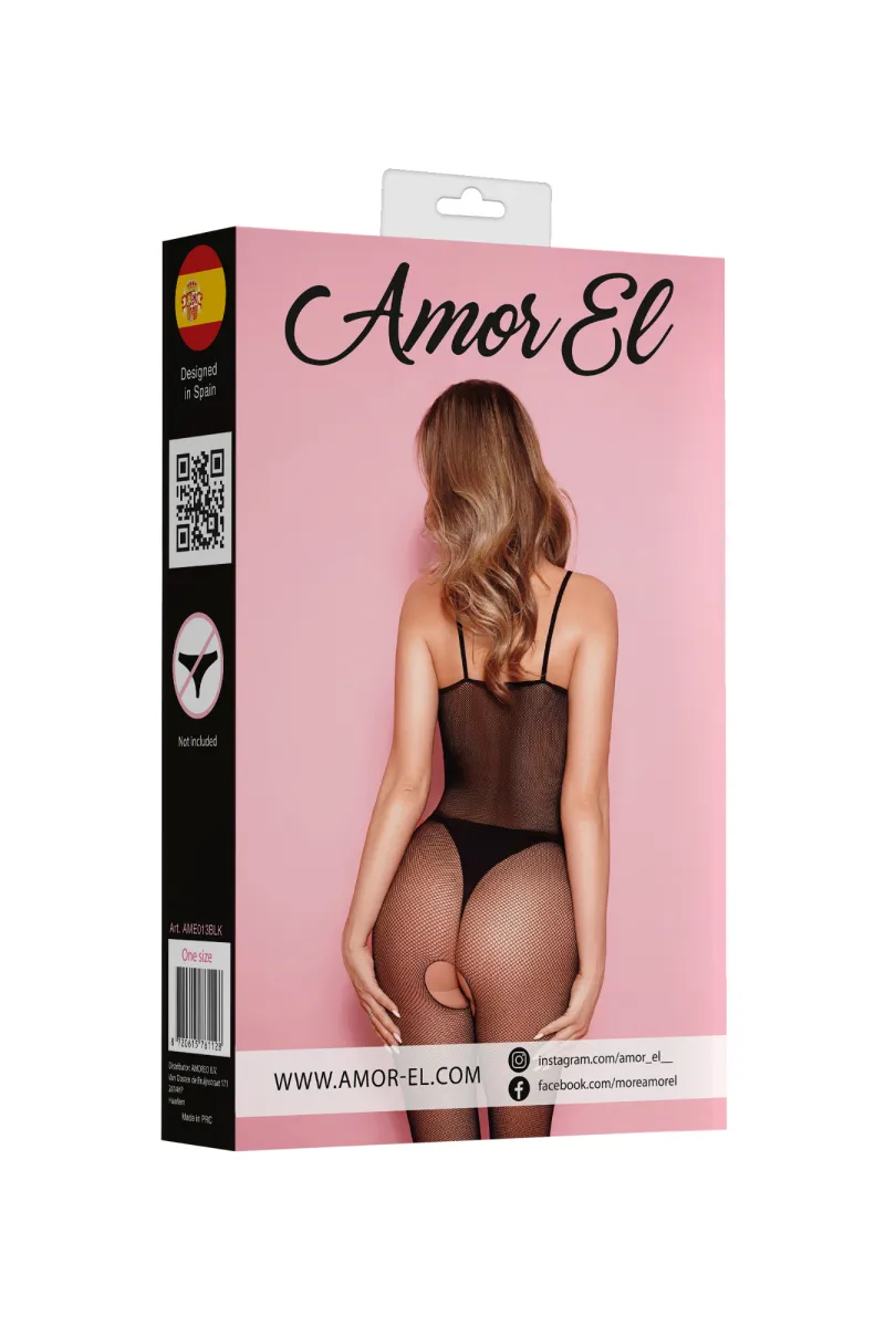 Боди-комбинезон на бретельках с открытым доступом. Дизайн выполнен в виде мелкой сетки.