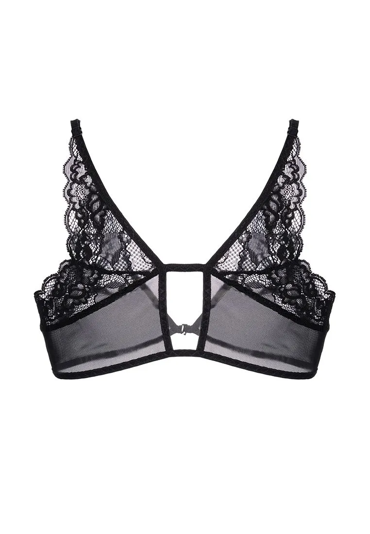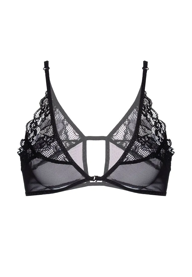 Бралетт с застежкой спереди Odette от Erolanta® — идеальное дополнение к вашему соблазнительному образу. Мягкий эластичный топ из прозрачной сетки деликатно акцентирует внимание на полуобнаженной груди. Изысканные вставки из кружева украшают линию декольте и подчеркивают спинку. А тонкие регулируемые бретели и перемычки на спине выразительно подчеркивают изящный силуэт. Быть притягательной с бралетт Odette от Erolanta® легко. *Допускается замена кружева на аналогичное. На видео представлен бралетт Erolanta® Odette и трусики с имитацией шнуровки Erolanta® Cheryl.