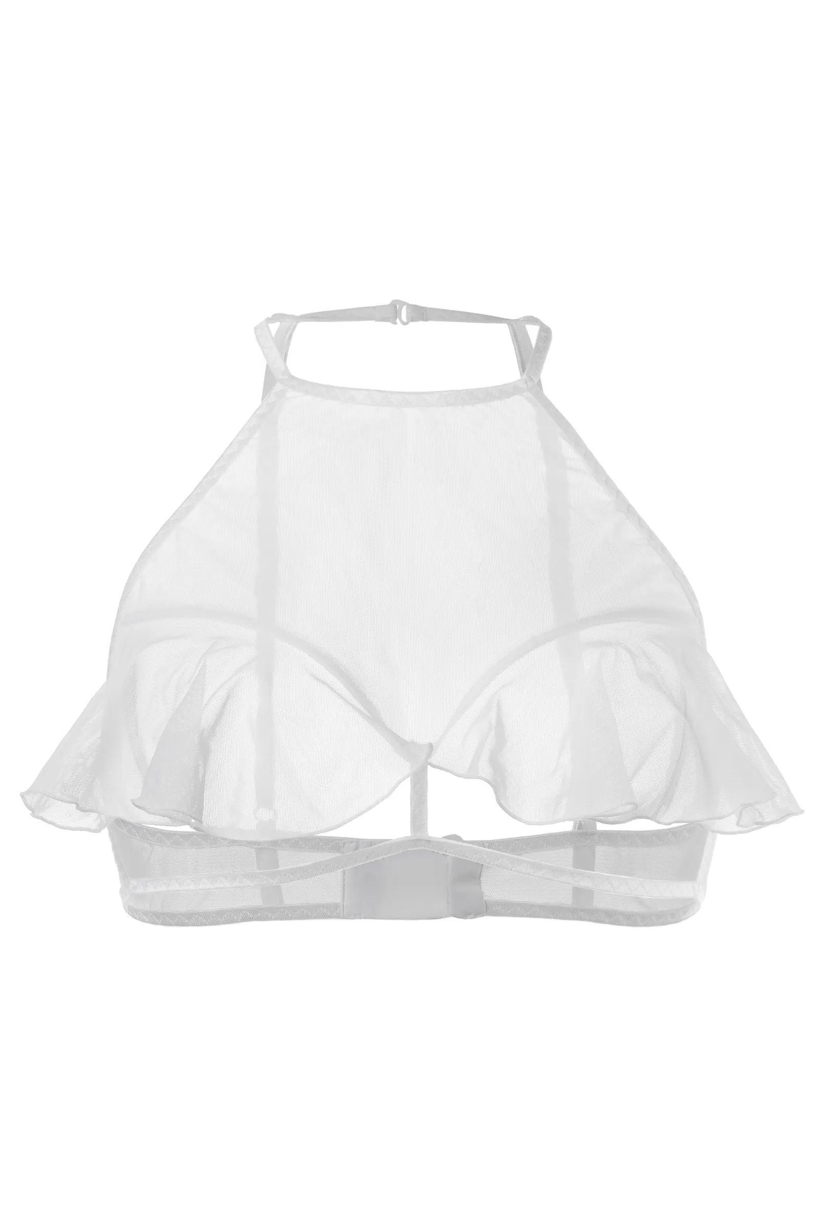 Откровенный бралетт Karen от Erolanta® не оставит вашего мужчину равнодушным. Мягкий топ из невесомой эластичной сетки приковывает взгляд к линии декольте. Очаровательные воланы игриво открывают доступ к груди. А тонкие регулируемые бретели, застежка на шее и многорядная застежка на спине обеспечивают комфортную посадку, которая позволит чувствовать себя невероятно уверенно. Заставьте сердце любимого биться чаще с бралетт Karen от Erolanta®.