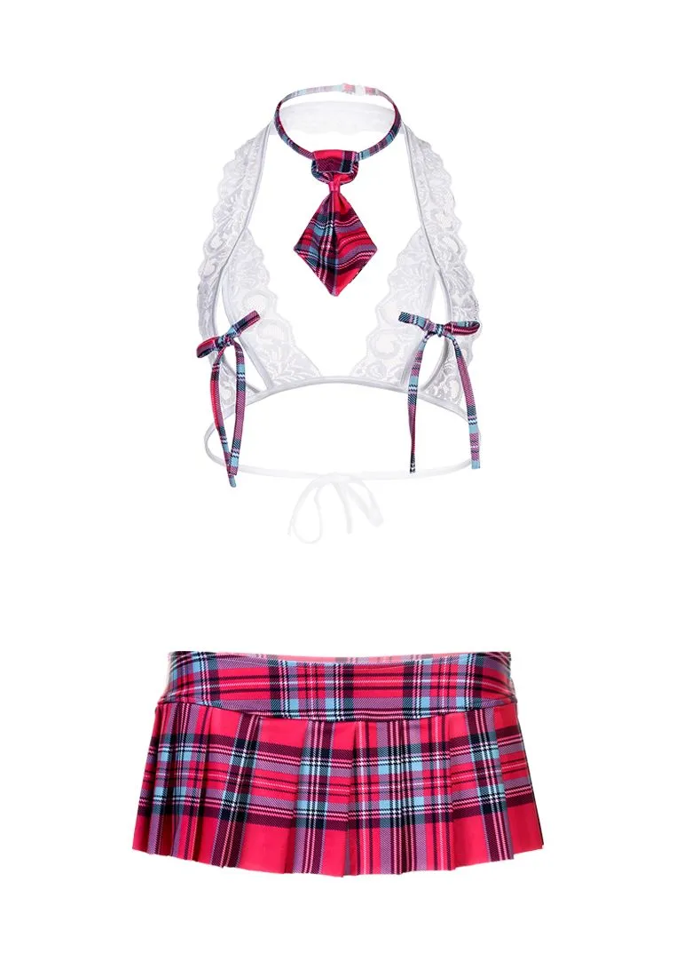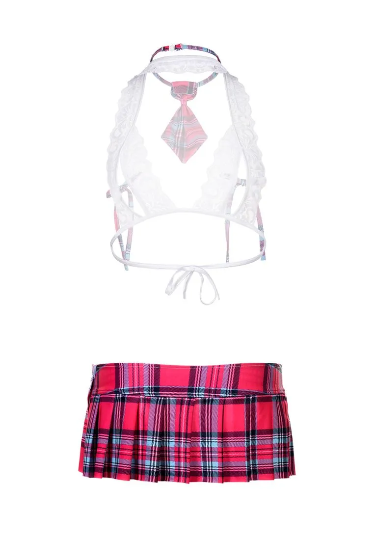 Этот костюм школьницы поможет перевоплотиться в дерзкую и готовую к любым экспериментам яркую девчонку. Кокетливые бантики на топе лишь слегка прикрывают откровенные вырезы, обнажающие грудь. Мини-юбочка подчёркивает длину ног и манит позаигрывать с подолом. А завершает образ стильный галстучек в клетку. Ученице в таком костюме «двойки» ставить не захочется!