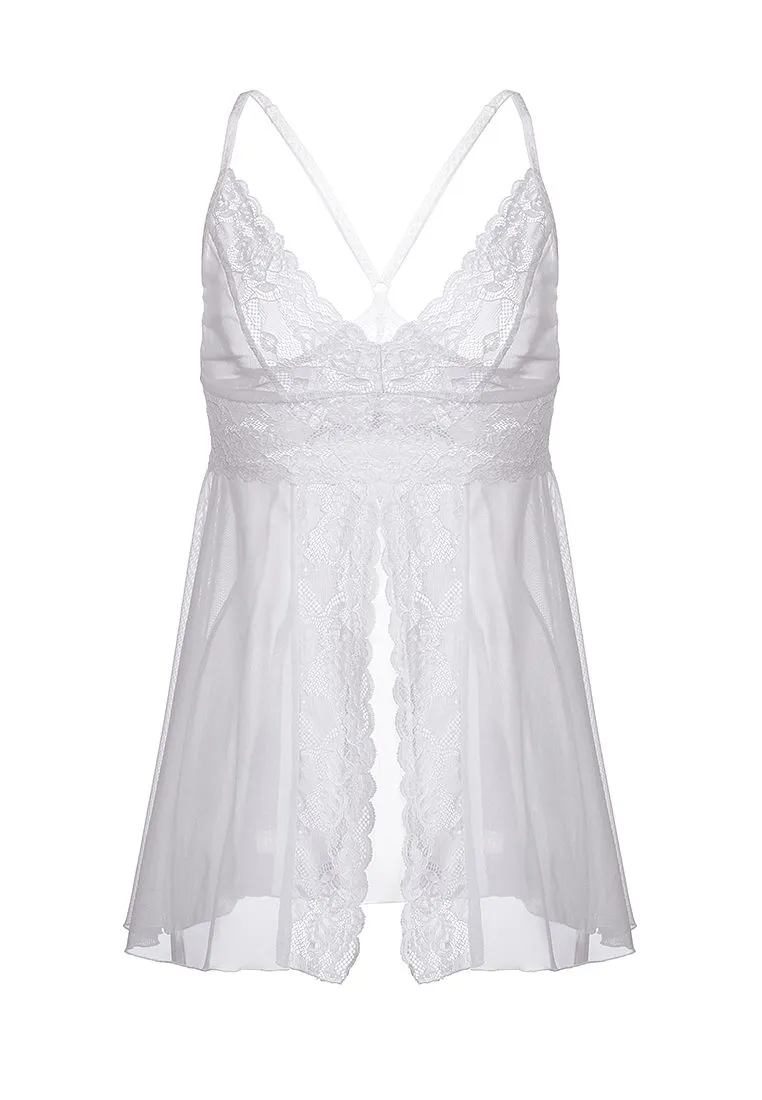 Комбинация Nataliya от Erolanta® с V-образным декольте и манящим разрезом спереди — неприлично роскошный вариант для эффектного соблазнения. Силуэт бэби-долл придает образу легкость и очаровательную наивность. Эластичная прозрачная сетка в сочетании с нежным кружевом интригующе подчеркивает сексуальность женского тела. Глубокий вырез на груди и провокационный разрез спереди приковывают внимание. Тонкие регулируемые бретели и кружево изящно обрамляют спину. Комбинация Erolanta® Nataliya — для особенных ночей. *Допускается замена кружева на аналогичное.
