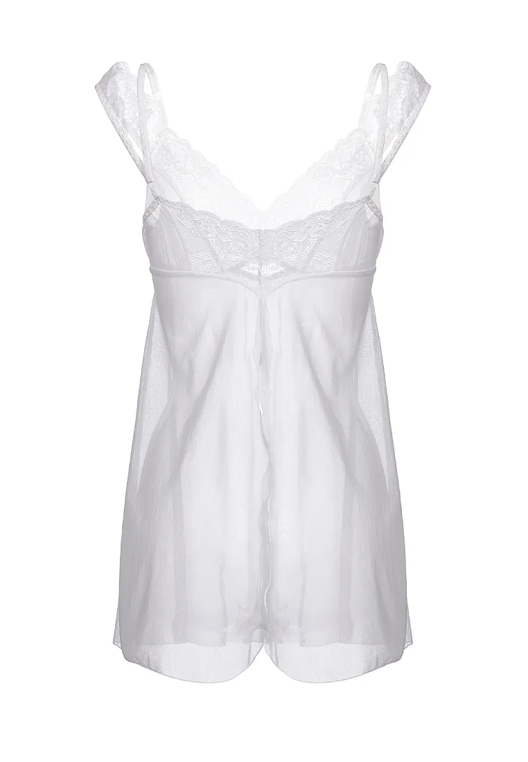 Комбинация Sofia от Erolanta® с невесомыми мини-крылышками и провокационным разрезом сзади — тот инструмент обольщения, который никого не оставит равнодушным. Силуэт бэби-долл подчеркивает ложную невинность образа. Эластичные материалы дарят комфорт. Регулируемые бретели обеспечивают безупречную посадку по росту. Тонкое кружево с цветочным узором элегантно выделяет линию груди. Ажурные бретели-крылышки игриво спадают с плеч, заставляя сердце мужчины биться учащенно. А интригующий разрез сзади пробуждает самые смелые фантазии. Раскройте новые грани своей чувственности с комбинацией Erolanta® Sofia. *Допускается замена кружева на аналогичное.