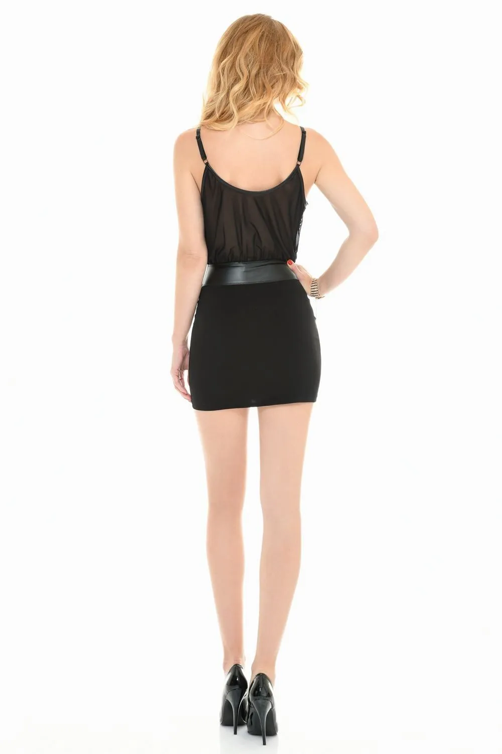 Платье Alix из коллекции Les P'tites Folies, Volume 8 от французского дизайнера Patrice Catanzaro подчеркнет Вашу женственность и сексуальность. Платье выполнено из сочетания тонкого черного материала и прозрачной мелкой сетки. Линию талии отлично подчеркнет широкий поясок и визуально сделает фигуру более стройной. Особой пикантности наряду придает прозрачный верх, сквозь который будут проступать очертания груди. Носить такое платье можно как с красивым нижним бельем, так и с пестисами.