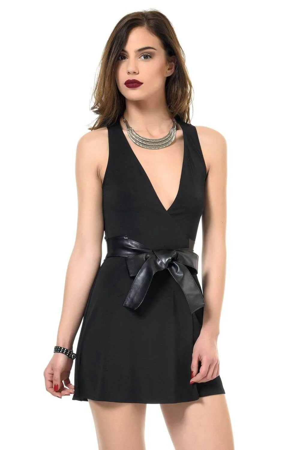 Короткое платье Sibylle из коллекции Les P'tites Folies от французского дизайнера Patrice Catanzaro выполнено из тонкого тянущегося материала. Платье украшает широкий поясок из имитурующего мокрую кожу материала, который можно завязать в пышный бант. Пояс выделит линию талии и визуально сделает фигуру более стройной, а глубокий вырез в области декольте акцентирует внимание на груди. Платье выглядит лаконично, но при этом очень элегантно, поэтому подойдет как для романтического вечера, так и для выхода в свет.