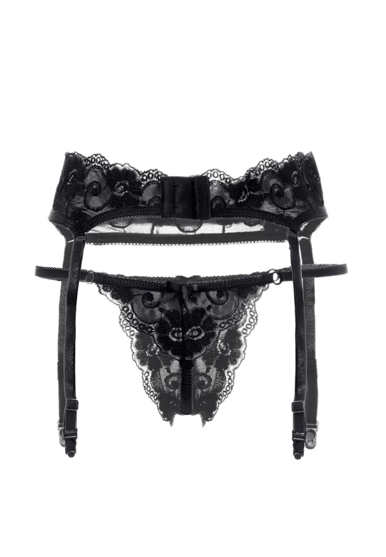 Комплект Erolanta® Tatyana: пояс для чулок и стринги кружевные, эластичные. Стринги со вставкой сеточки внутри, декорированы колечками, атласными бантиками. Пояс с ажурным верхним краем, на регулируемой застежке. *Допускается замена кружева на аналогичное. Чулки в комплект не входят. На видео комплект Erolanta® Tatyana дополнен идеально сочетающимся бралеттом Erolanta® Marisa.