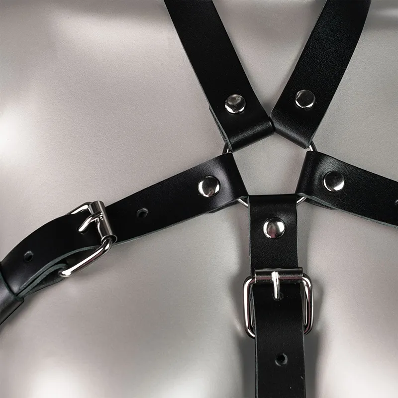Портупея изготовлена из натуральной кожи черного цвета, а вся фурнитура выполнена из нержавеющей стали. Ремни удобно регулируются по размеру легкодоступными застежками.
