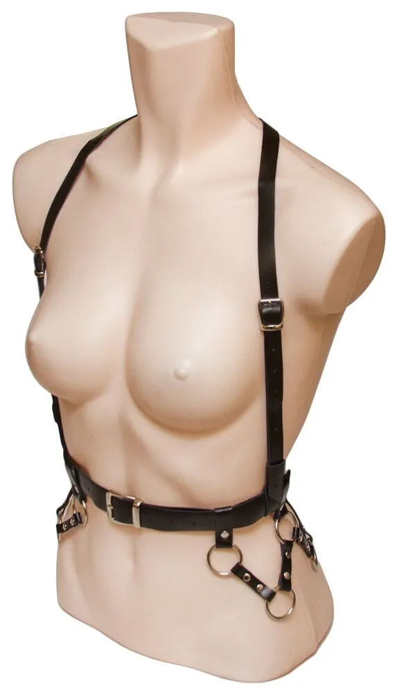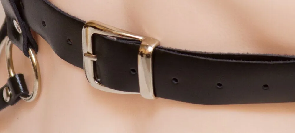 Роскошная портупея из натуральной кожи черного цвета подчеркнет Ваш индивидуальный стиль, придав Вашему образу дерзости и сексуальности. Портупею можно носить на голое тело во время ролевых игр для создания необходимой атмосферы, а также в повседневной жизни поверх одежды.