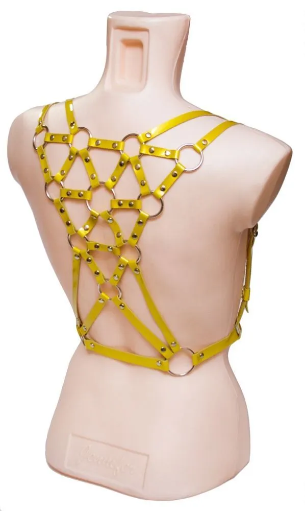Шикарная портупея из натуральной кожи желтого цвета прекрасно подчеркнет Ваш индивидуальный стиль, придав Вашему образу дерзости и сексуальности. Портупею можно носить на голое тело во время ролевых игр для создания необходимой атмосферы или в повседневной жизни поверх одежды.