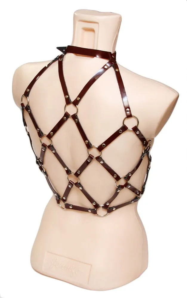 Шикарная портупея из натуральной кожи бордового цвета прекрасно подчеркнет Ваш индивидуальный стиль, придав Вашему образу дерзости и сексуальности. Портупею можно носить на голое тело во время ролевых игр для создания необходимой атмосферы или в повседневной жизни поверх одежды.