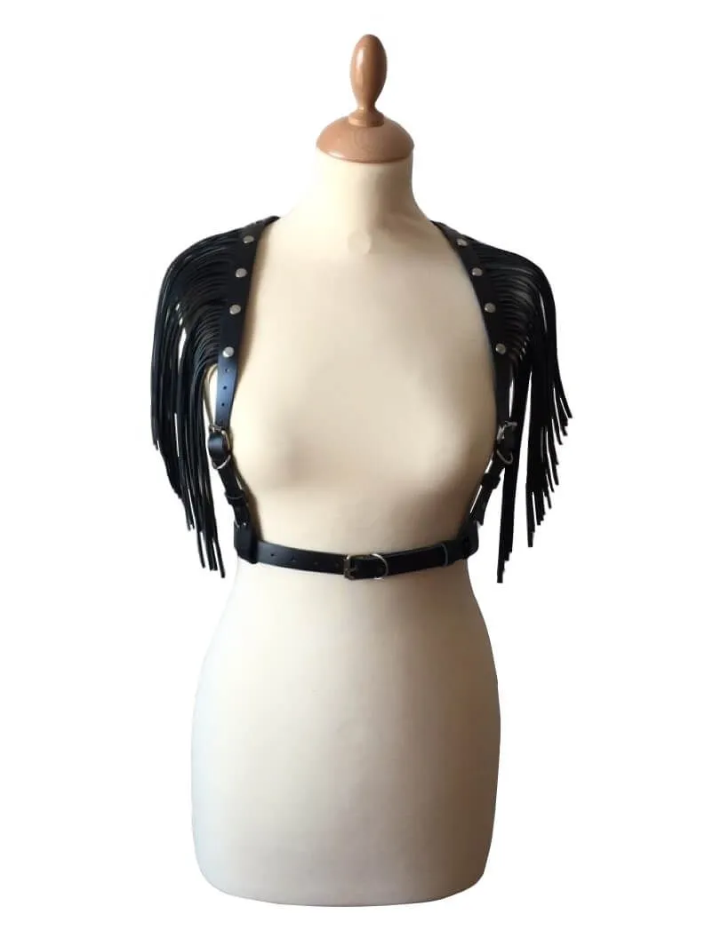 Портупея Бахрома подчеркнет Ваш уникальный стиль и добавит образу притягательности. Портупею можно носить поверх одежды, комбинируя ее с различными деталями одежды для создания неповторимых образов. Вы вольны экспериментировать, ведь ее можно комбинировать с различными деталями одежды, и каждый раз выглядеть неповторимо и сногсшибательно! Бахрома отстегиваются, поэтому у Вас будет еще больше вариантов для создания новых запоминающихся образов. Портупею также можно носить и на голое тело во время ролевых игр с партнером для создания необходимой атмосферы.