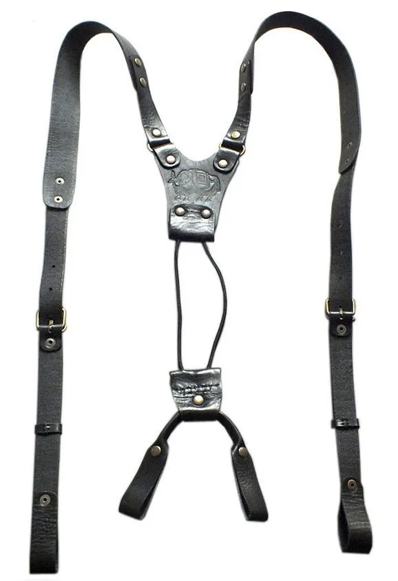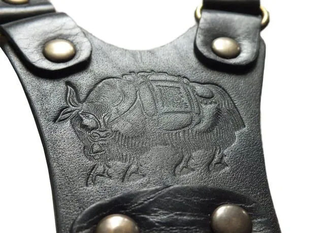Подтяжки производства российской компании "Подиум" сделаны из натуральной кожи черного цвета и декорированы клише с изображением быка. Такой аксессуар, помимо выполнения своей функциональной роли, поможет Вам в создании нужного образа. Подтяжки визуально сделают силуэт более подтянутым и добавят брутальности.