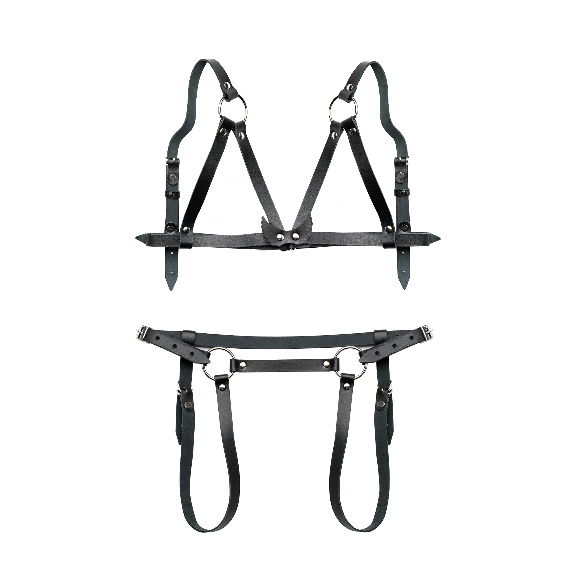 Женская портупея прекрасно дополнит ваш ролевой костюм, придавая ему воинственности. Выполнена из нескольких ремней, соединенных между собой при помощи металлических колец. Аксессуар можно носить как в повседневной жизни поверх одежды, так и сделать его пикантной деталью своего ролевого интимного костюма. При помощи металлических пряжек и регуляторов можно подогнать под любую фигуру.