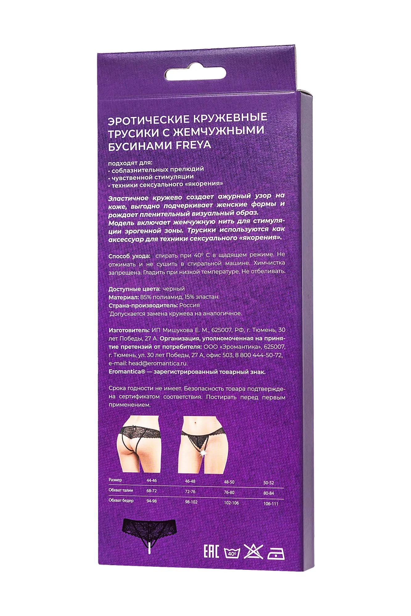 Эротические кружевные трусики с жемчужными бусинами FREYA подходят для: соблазнительных прелюдий чувственной стимуляции техники сексуального «якорения» Эластичное кружево создает ажурный узор на коже, выгодно подчеркивает женские формы и рождает пленительный визуальный образ. Модель включает жемчужную нить для стимуляции эрогенной зоны. Трусики используются как аксессуар для техники сексуального «якорения». ДАРИМ к КАЖДЫМ ТРУСИКАМ ЖЕНСКИЙ ГИД по МУЖСКИМ ФАНТАЗИЯМ! (pdf-файл скачивается по QR-коду, указанному на бирке к изделию)