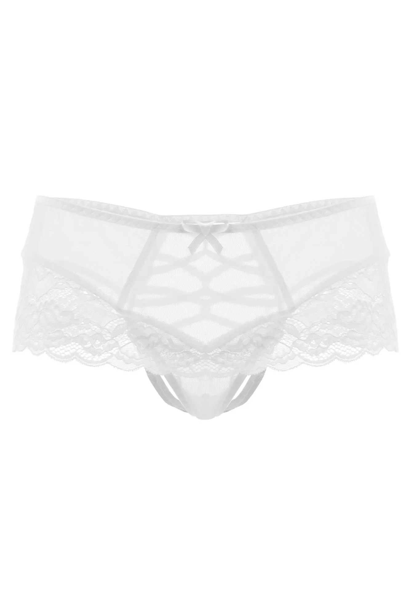 Яркое сочетание изысканного кружева и смелой шнуровки делает эротические трусики Cheryl от Erolanta® незаменимым атрибутом интригующего образа. Эластичная сетка, дополненная вставками из нежного кружева, соблазнительно облегает бедра и расставляет на них аппетитные акценты. Эффектная шнуровка пробуждает смелые фантазии. Миниатюрные кольца и регуляторы на внутренних перемычках обеспечивают комфортную посадку. А дизайн доступа к интимной зоне позволяет наслаждаться игрой, не снимая при этом трусики. Почувствуйте себя по-настоящему желанной с трусиками Cheryl от Erolanta®. *Допускается замена кружева на аналогичное. На видео трусики Erolanta® Cheryl дополнены бралеттом с застежкой спереди Erolanta® Odette.
