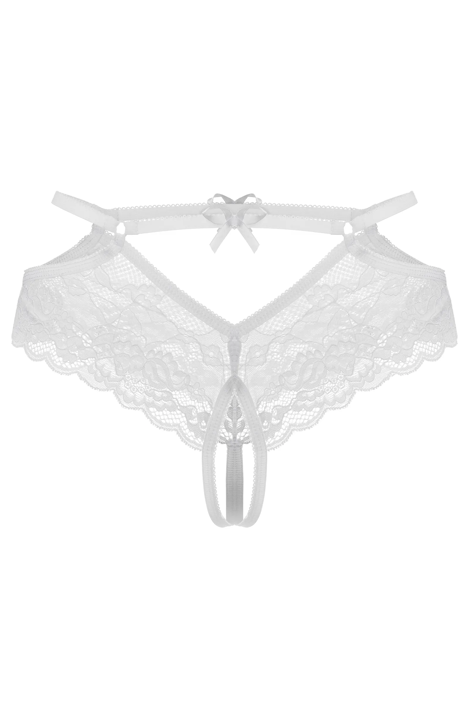 Эротические трусики Agnes от Erolanta® вдохновляют на воплощение в реальность желанных интимных сценариев. Эластичное кружево рисует волнующий контур бедер. Тонкие перемычки, украшенные миниатюрными кольцами и игривым атласным бантиком, расставляют интригующие акценты. Пикантный вырез в интимной зоне подогревает желание и позволяет наслаждаться игрой, не снимая при этом трусики. Окружите себя аурой чувственности с трусиками Erolanta® Agnes. *Допускается замена кружева на аналогичное. На видео трусики Erolanta® Agnes дополнены многоразовыми пэстис Erolanta® Cora.