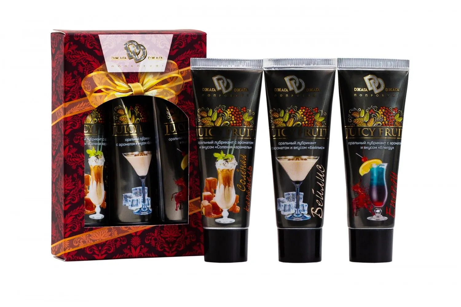 Подарочный набор состоит из трех сочных и ярких ароматизированных смазок нашей коллекции: Juicy fruit соленая карамель, Juicy fruit Бейлис, Juicy fruit Energy. Интимные лубриканты насыщенных ароматов подарят вам незабываемые впечатления оральных ласк. Продукты содержат только натуральные пищевые ароматизаторы. Абсолютно безопасен для орального потребления.