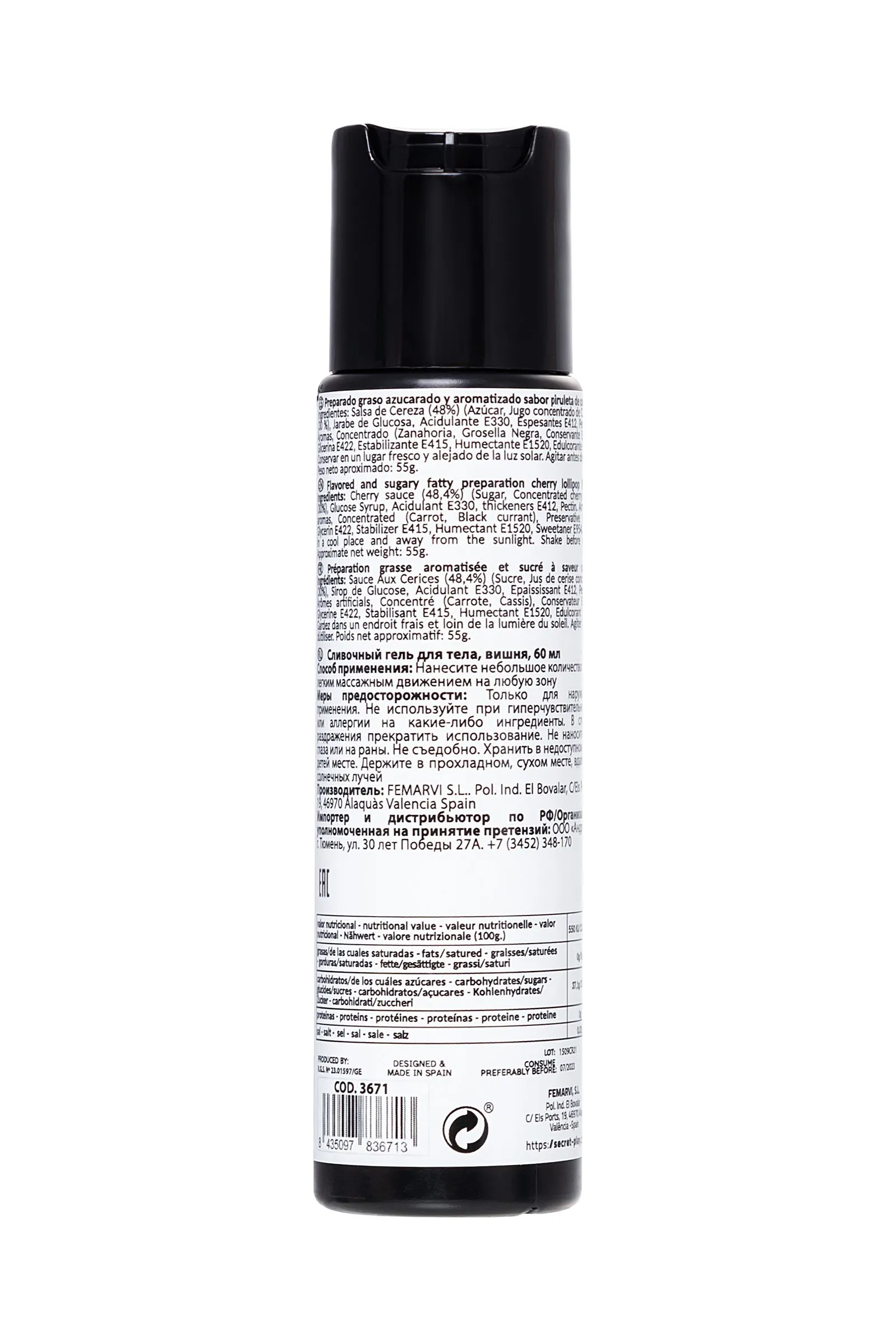 ИНТИМНЫЙ ГЕЛЬ SECRET PLAY CHERRY LOLLIPOP GEL - 60 ML "SWEET LOVE" Сладкая любовь – этот смазывающий гель CHERRY LOLLIPOP GEL - 60 ML "SWEET LOVE" идеально подходит для того, чтобы вы таяли от удовольствия. Сладкий и восхитительный аромат, который заставит вас не переставать облизывать и целовать своего партнера. CHERRY LOLLIPOP GEL - 60 ML "SWEET LOVE" - с ним вы можете путешествовать губами по телу вашего партнера, так как они идеально подходят для всех эрогенных зон, сосков, шеи, яичек, ... Кремообразная текстура этого геля обладает превосходными смазочными свойствами. Кроме того, секрет CHERRY LOLLIPOP GEL - 60 ML "SWEET LOVE" – идеально подходит для интимного массажа. Добавьте страсти и пикантного огонька в свою сексуальную игру. Гель очарует вас своим восхитительным вкусом вишневого леденца – аромат, перед которым трудно устоять. Емкость с системой «Disc-Top» Простое нанесение Объем: 60 мл (55 г) Вкус: вишневый леденец Глицериновая основа Совместимость с презервативами и игрушками Состав: сладкий и ароматизированный жирный препарат вишневый соус со вкусом леденцов на палочке (48,4%) (сахар, сироп глюкозы, вода, вишневое пюре (10%), краситель e163, модифицированный крахмал, желирующий агент: пектин, подкислитель e330, искусственные ароматизаторы, консервант e202 ), глицерин е422, стабилизатор е415, увлажнитель е1520. подсластитель e954 Способ применения: Нанесите массирующими движениями на желаемую область. Меры предосторожности: Не используйте при гиперчувствительности или аллергии на какие-либо ингредиенты. В случае раздражения прекратить использование. Не наносите на глаза или на раны. Хранить в недоступном для детей месте. Держите в прохладном, сухом месте, вдали от солнечных лучей.
