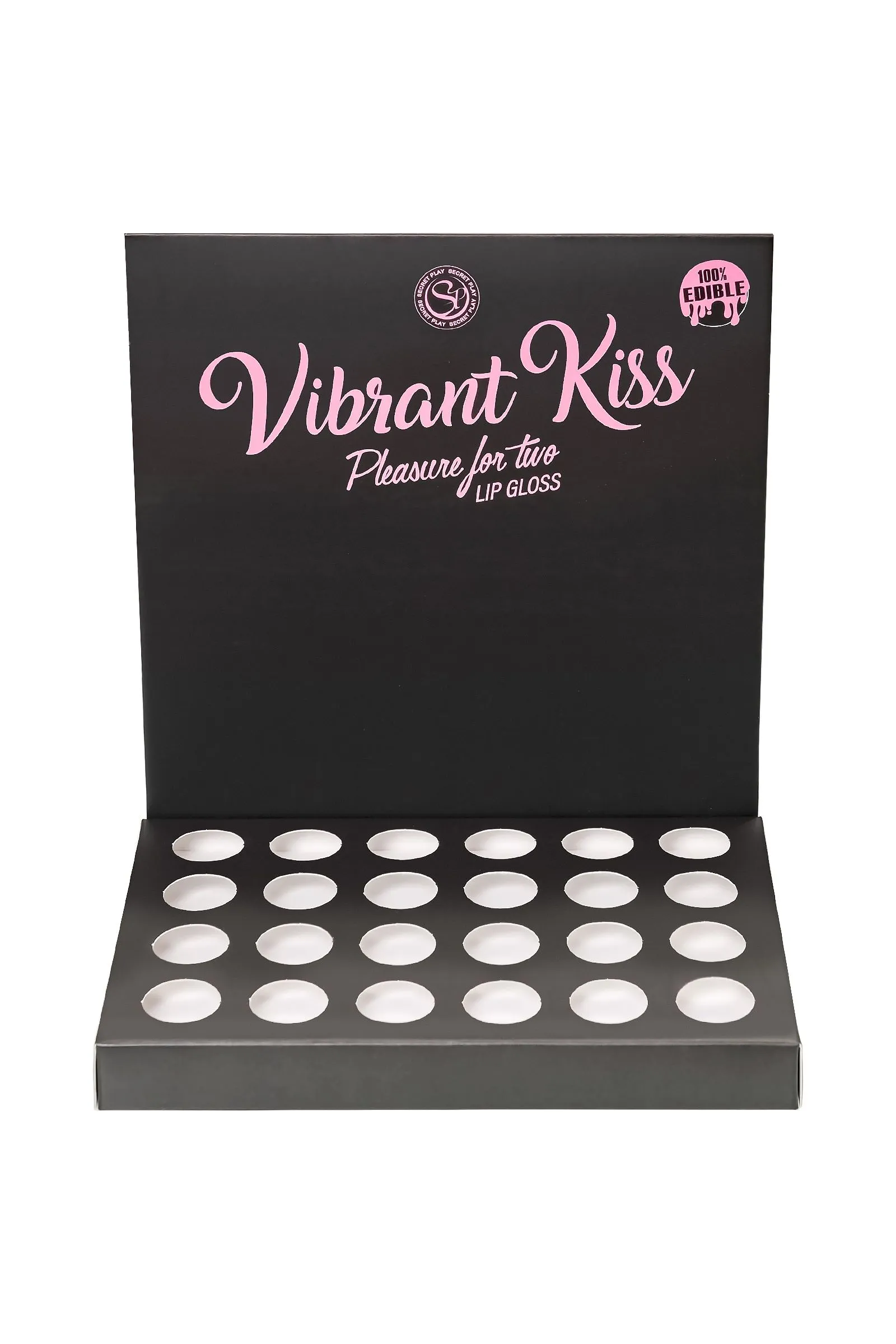 Восхитительные ощущения от сочетания сладкого поцелуя и волшебных мурашек дарят блески для губ Lip Gloss Vibrant Kiss. Ощущение взрыва, перед которым невозможно устоять. Блеск может доставить удовольствие обоим партнерам стимулирующими вибрационными волнами, которые ощутимы уже через несколько секунд после нанесения на губы. Его вибрационные волны вызывают приятное покалывание, которое способствует стимуляции нервных окончаний и повышает чувствительность эрогенных зон, увеличивая удовольствие. Партнер ощутит мурашки при поцелуе и в интимной зоне при оральном сексе. Кроме того, этот блеск придает 3D эффект губам, делая их более сочными и объемными. Стильный дисплей-подставка в цветах бренда гарантированно вызывает интерес покупателей. Установите дисплей в прикассовой зоне, чтобы эффектно оформить витрину. Выбирайте один из 6 восхитительных вкусов, или миксуйте разные сочетания, которые на 100% съедобны. Набор из 6 разнообразных вкусов и ароматов в специальном дисплее-подставке включает в себя: 4 блеска для губ Vibrant Kiss Strawberry Gum с умопомрачительным вкусом и ароматом клубничной жвачки, арт. 3653 4 блеска для губ Vibrant Kiss Mint – вкус и аромат сладкой освежающей мяты, арт. 3645. 4 блеска для губ Vibrant Kiss Brownie – вкус и аромат шоколадного печенья, арт. 3655 4 блеска для губ Vibrant Kiss Coke – вкус и аромат Колы, арт. 3657. 4 блеска для губ Vibrant Kiss Sweet Popcorn – вкус и аромат попкорна, арт. 3658. 4 блеска для губ Vibrant Kiss Doughnut – вкус и аромат пончика, арт. 3656. Способ применения: Нанесите на губы, через несколько секунд вы почувствуете стимулирующую вибрацию. Объем: 6 гр Глицериновая основа Совместимость с презервативами и игрушками 100% съедобно Перед использованием взболтать Сделано в Испании Меры предосторожности: Встряхните перед использованием. Не используйте при гиперчувствительности или аллергии на ингредиенты. Не наносите на глаза или на раны. Держись подальше от детей. Держите в прохладном, сухом месте, вдали от солнечных лучей. В случае раздражения прекратить использование.