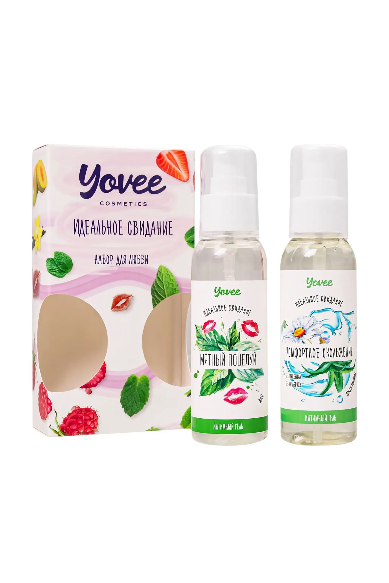 "Набор для любви" от бренда Yovee идеально подходит для эротических экспериментов. Входящий в набор съедобный интимный гель с соблазнительным мятным вкусом и ароматом придаст оральному сексу еще больше пикантности и удовольствия, а увлажняющий интимный гель-смазка с алоэ и ромашкой обеспечит долгое скольжение, увлажнение и смягчение слизистой при вагинальном сексе. Используйте самостоятельно или смешайте гели, чтобы сделать вкус десерта менее сладким!. Оба геля подходят как для вагинального, так и для орального секса. Совместимы со всеми видами презервативов и игрушек для взрослых. ИДЕАЛЬНЫЙ ПОДАРОК ВОЗМОЖНОСТЬ СОЗДАТЬ СВОЙ ВКУС Все гели Yovee имеют простой и безопасный состав: вода; гидроксиэтилцеллюлоза - стабилизатор эмульсий, регулятор вязкости; Д-пантенол защищает слизистые, запускает процесс регенерации тканей; сорбат калия и бензоат натрия – безопасные пищевые консерванты, разрешенные в натуральной и органической косметике; лимонная кислота помогает поддерживать оптимальный уровень рН, является естественным консервантом. БЕЗ ГЛИЦЕРИНА БЕЗ ПАРАБЕНОВ БЕЗ КРАСИТЕЛЕЙ Комплектация: 721005 Съедобная гель-смазка Yovee «Мятный поцелуй» с Д-Пантенолом, со вкусом мяты, 100 мл 721053 Увлажняющая гель-смазка Yovee «Комфортное скольжение» с Д-Пантенолом, алоэ и ромашка, 100 мл