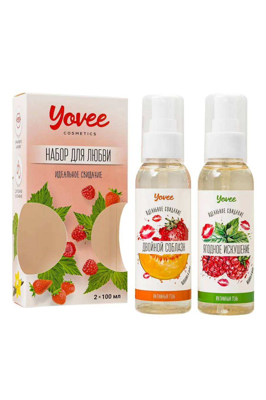 721007 Съедобная гель-смазка Yovee «Двойной соблазн» с Д-Пантенолом, со вкусом клубники и дыни, 100 мл