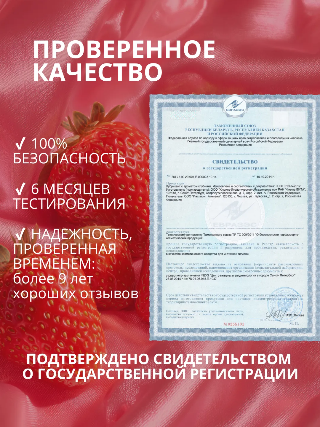 Лубрикант с ароматом клубники на водной основе не содержит калорий. Обеспечивает мягкое скольжение. Только пищевые компоненты в составе. Без красителей. Подходит для использования с презервативами и интимными игрушками. Легко смывается водой. Способ применения: легкими движениями нанесите лубрикант перед половым актом. Необходимое количество лубриканта подбирается индивидуально. После нанесения тубу следует плотно закрыть. Состав: вода очищенная, глицерин, гидроксиэтилцеллюлоза, бензоатнатрия, сорбат калия, пропиленгликоль, ароматизатор пищевой, сахаринат натрия, лимонная кислота.