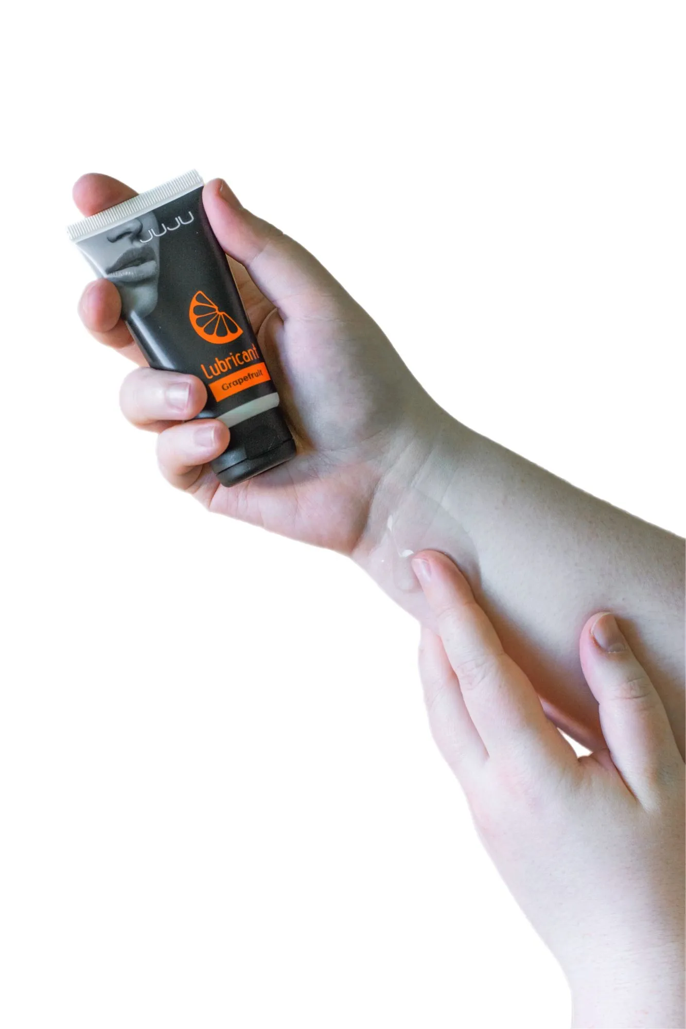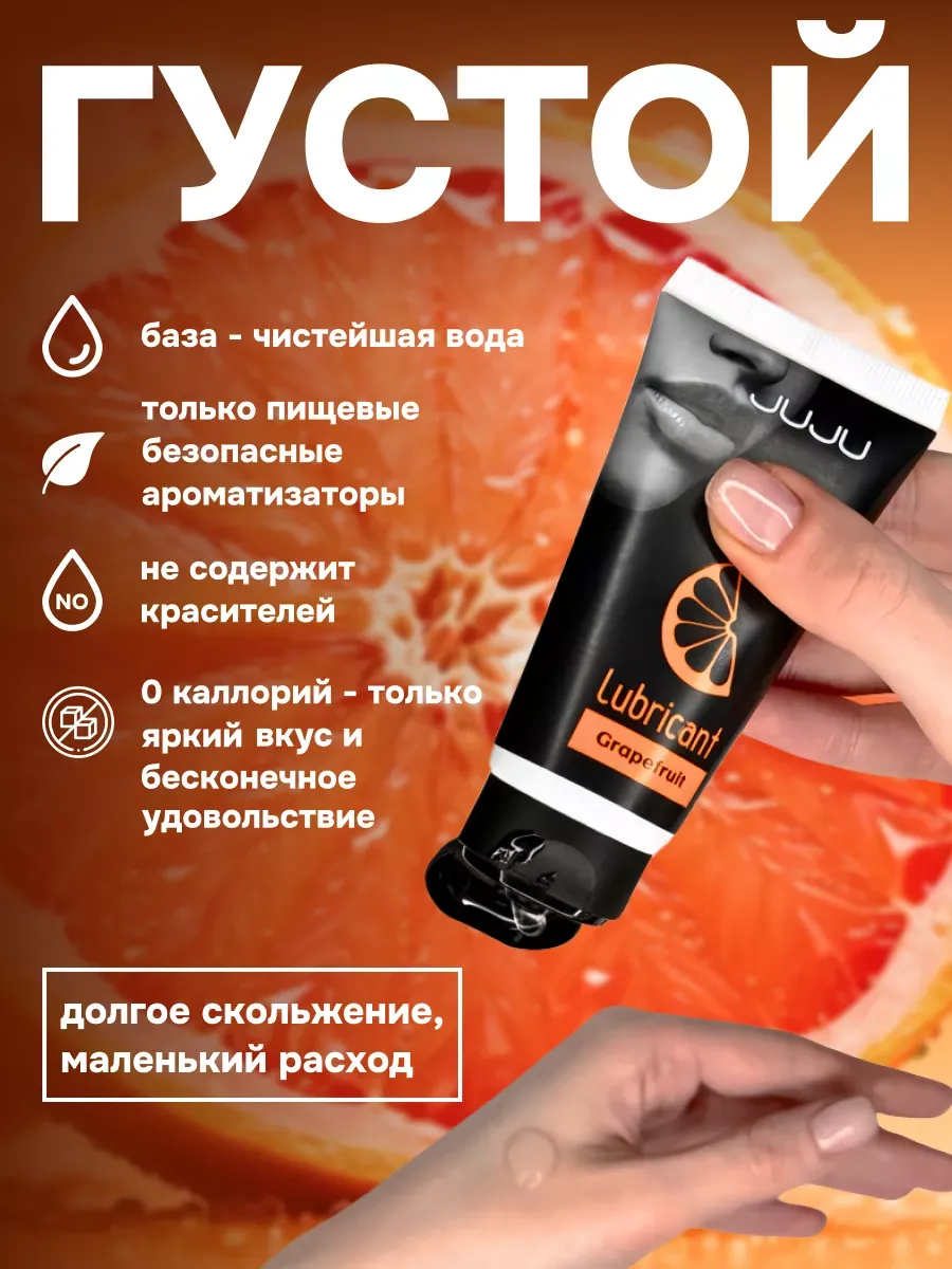 Съедобный лубрикант со вкусом грейпфрута отлично подойдет для любого вида близости. Водная основа смазки позволяет разнообразить интимную жизнь, обеспечивая продолжительное шелковистое скольжение. Лубрикант можно использовать с любыми интим игрушками, а также с презервативами. Состав: вода очищенная, глицерин, гидроксиэтилцеллюлоза, бензоат натрия, сорбат калия, пропиленгликоль, ПЭГ-40 гидрогенизированное касторовое масло, ароматизатор пищевой, сахаринат натрия, лимонная кислота, объем – 50 мл, производитель – JuJu (Россия). срок годности-3 года.