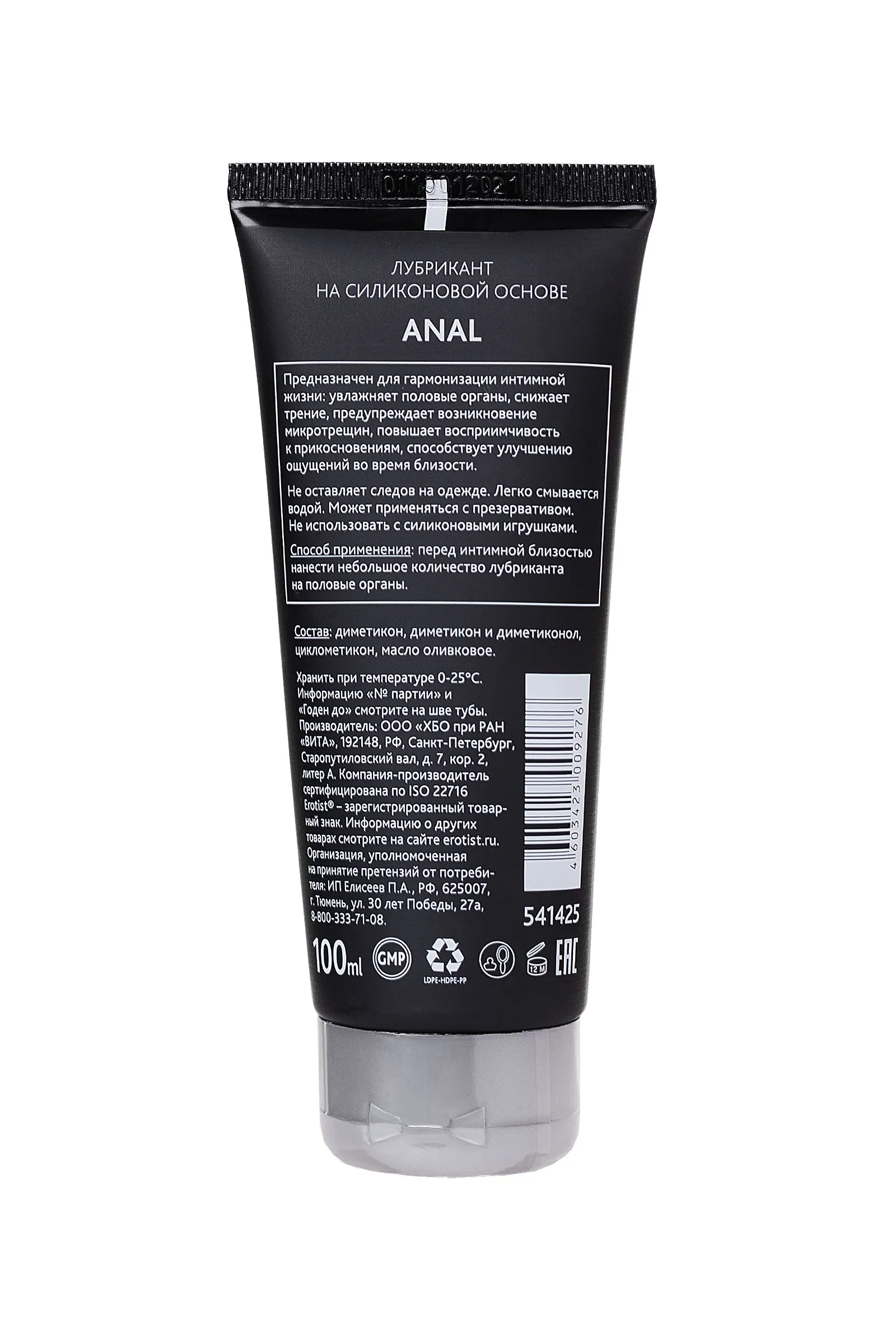 Лубрикант на силиконовой основе Erotist Anal создан по заказу поклонников анального секса. При производстве этого лубриканта были учтены все отзывы, пожелания, комментарии и даже истории на форумах. Поэтому этот лубрикант умеет всё: устраняет неприятные ощущения, обладает антисептическим эффектом, обеспечивает легкое скольжение и безболезненное проникновение. Больше нет повода отказывать себе в анальном сексе! Лубрикант Erotist Anal имеет силиконовую основу: он гипоаллергенен, совместим с презервативами, не оставляет следов и легко смывается водой. Не совместим с силиконовыми секс-игрушками.
