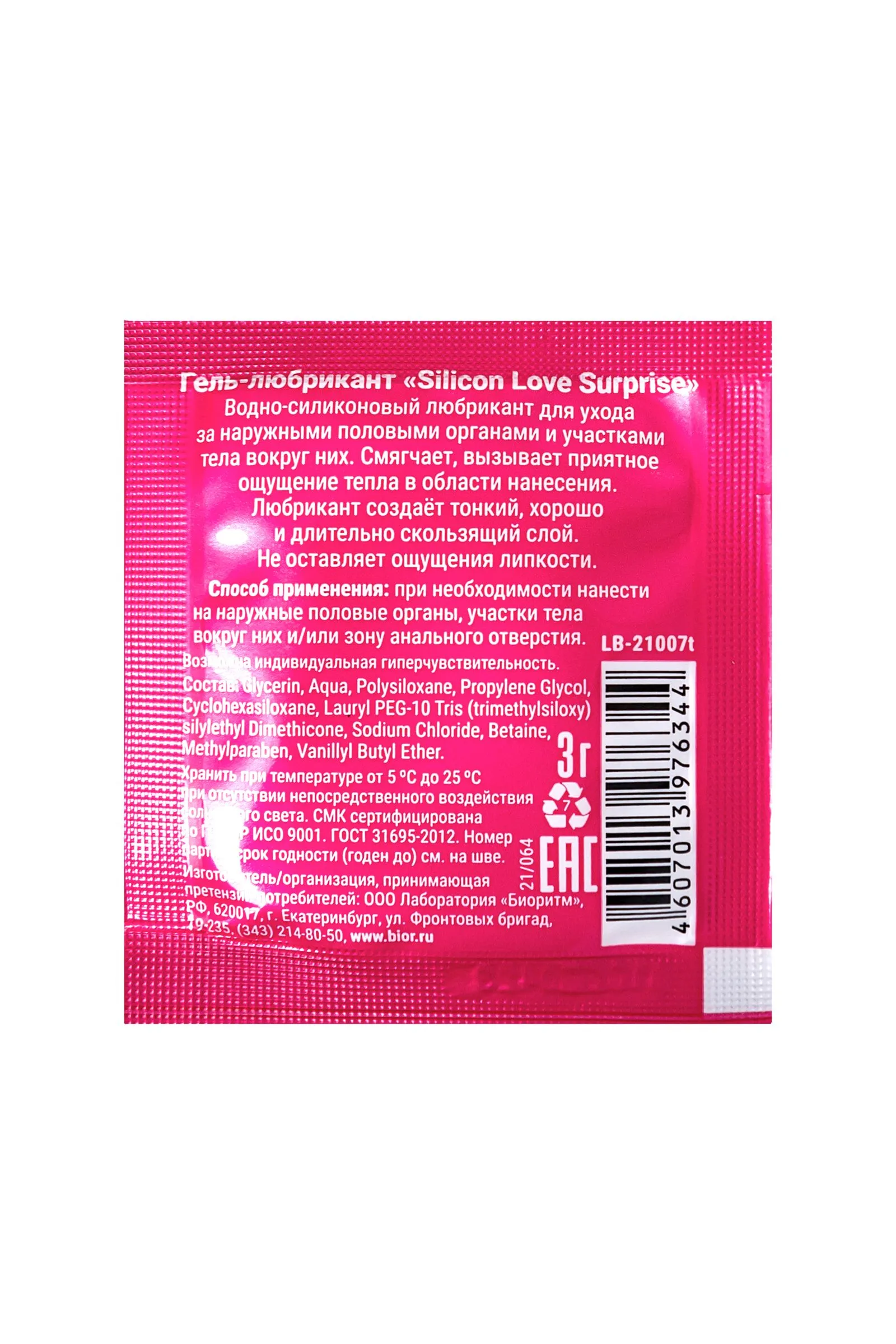 Водно-силиконовый любрикант для ухода за наружными половыми органами и участками тела вокруг них. Смягчает, вызывает приятное ощущение тепла в области нанесения. Любрикант создаёт тонкий, хорошо и длительно скользящий слой. Не оставляет ощущения липкости. Легко смывается водой. Способ применения: при необходимости нанести на наружные половые органы, участки тела вокруг них и/или зону анального отверстия.
