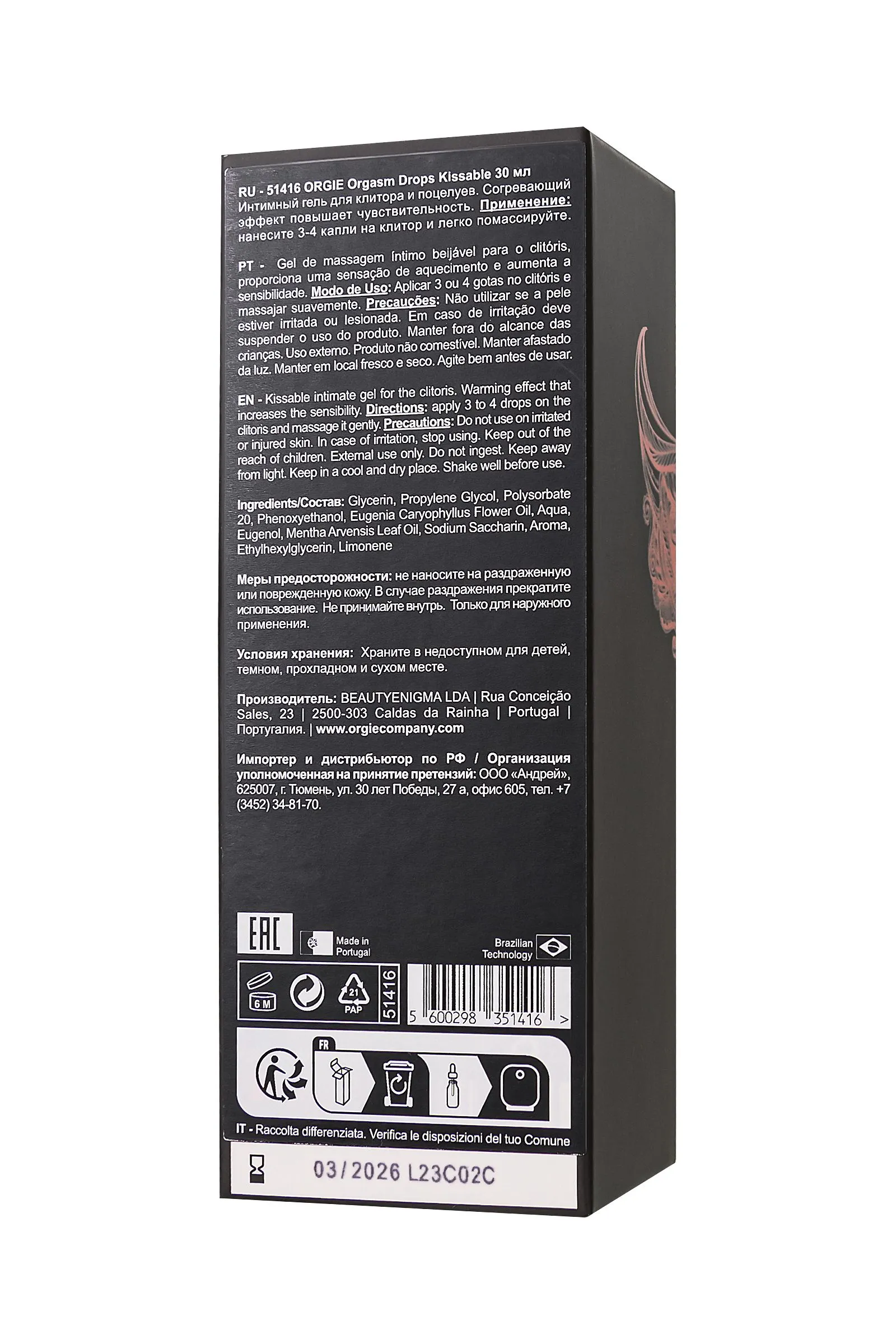 Добро пожаловать в мир невероятного блаженства с женскими интимными каплями для возбуждения клитора Orgasm Drops Kissable! Это не просто продукт – это настоящая революция от знаменитого бренда Orgie, воплощенная в высококачественных компонентах. Забудьте о рутине и предоставьте себе возможность испытать непередаваемые ощущения. Уникальная формула Orgasm Drops Kissable превращает ваш клитор в оазис чувствительности, воплощая все ваши фантазии в реальность. Почувствуйте, как каждая капля дарит согревающие и охлаждающие ощущения, стимулирует женское возбуждение, открывая перед вами магические моменты удовольствия. Этот гель придает неповторимые ощущения и оральному сексу. Его особая формула для поцелуев превращает наслаждение в искусство. Подарите вашему партнеру незабываемые впечатления, каждое прикосновение будет наполнено невероятной сладостью и страстью. К тому же, какое волшебство без вкуса? Orgie добавили нотку яблока, чтобы увлажнить ваше восприятие и сделать каждый поцелуй невероятно приятным. Просто нанесите 3-4 капли на клитор и позвольте магии начать действовать. Нежные массажные движения усилят эффект, наполняя вас потрясающим возбуждением. И если одной капли окажется мало, не стесняйтесь повторить опыт – это ваше наслаждение, и вы достойны его в полной мере. Роскошный стеклянный флакон с капельницей позволяет контролировать расход средства. Объем 30 мл рассчитан приблизительно на 150 доз. Искусство возбуждения – это искусство быть ближе к себе. Начните с небольшого – для тех, кто впервые сталкивается с продуктами Orgasm Drops или предпочитает более нежное воздействие, мы рекомендуем начать с одной капли. Затем просто погрузитесь в процесс, увеличивая дозу, пока не найдете свою идеальную гармонию удовольствия и комфорта. Откройте новые горизонты удовольствия с Orgasm Drops Kissable – вашим ключом к невероятным оргазмическим взрывам!