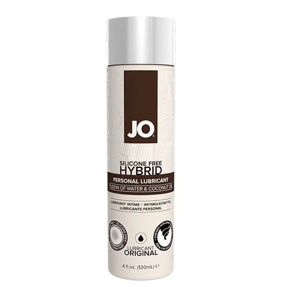 Лубрикант на основе воды и кокосового масла JO Silicone-free Hybrid. Особая формула разработана специально для создания комфорта и ухода во время близости. Уникальная комбинация из воды и кокосового масла обеспечивает длительное гладкое скольжение без липкости и скатывания, а также качественный деликатный уход. Рекомендуется во всем мире врачами и фармацевтами. Лубрикант обладает белой кремообразной текстурой с легким ароматом натурального кокосового ореха. Обеспечивает долгое комфортное скольжение и уход за кожей, питая и увлажняя ее. Легко смывается водой.