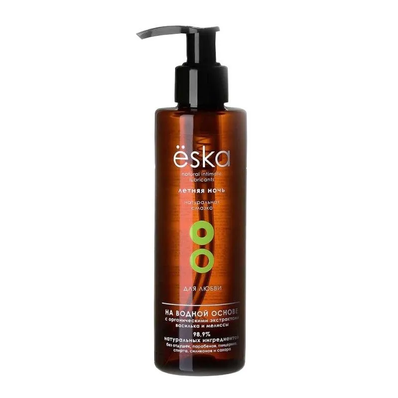 Ёska – это новое поколение лубрикантов со 100% безопасной, чистой и натуральной формулой. Формула содержит только сертифицированные органические экстракты и натуральные растительные ингредиенты, которые без вреда для здоровья помогут достичь полного комфорта и удовольствия во время занятий любовью. Попробуй вкус летней ночи! Манящий и нежный, как теплая летняя ночь. Дыхание свежей прохлады с ароматом луговых трав. Сладкая влажность летней зелени зовет тебя на встречу новым чувствам. Это натуральный лубрикант для любви от Ёska. Может использоваться для орального, вагинального и анального секса, безопасный при проглатывании.