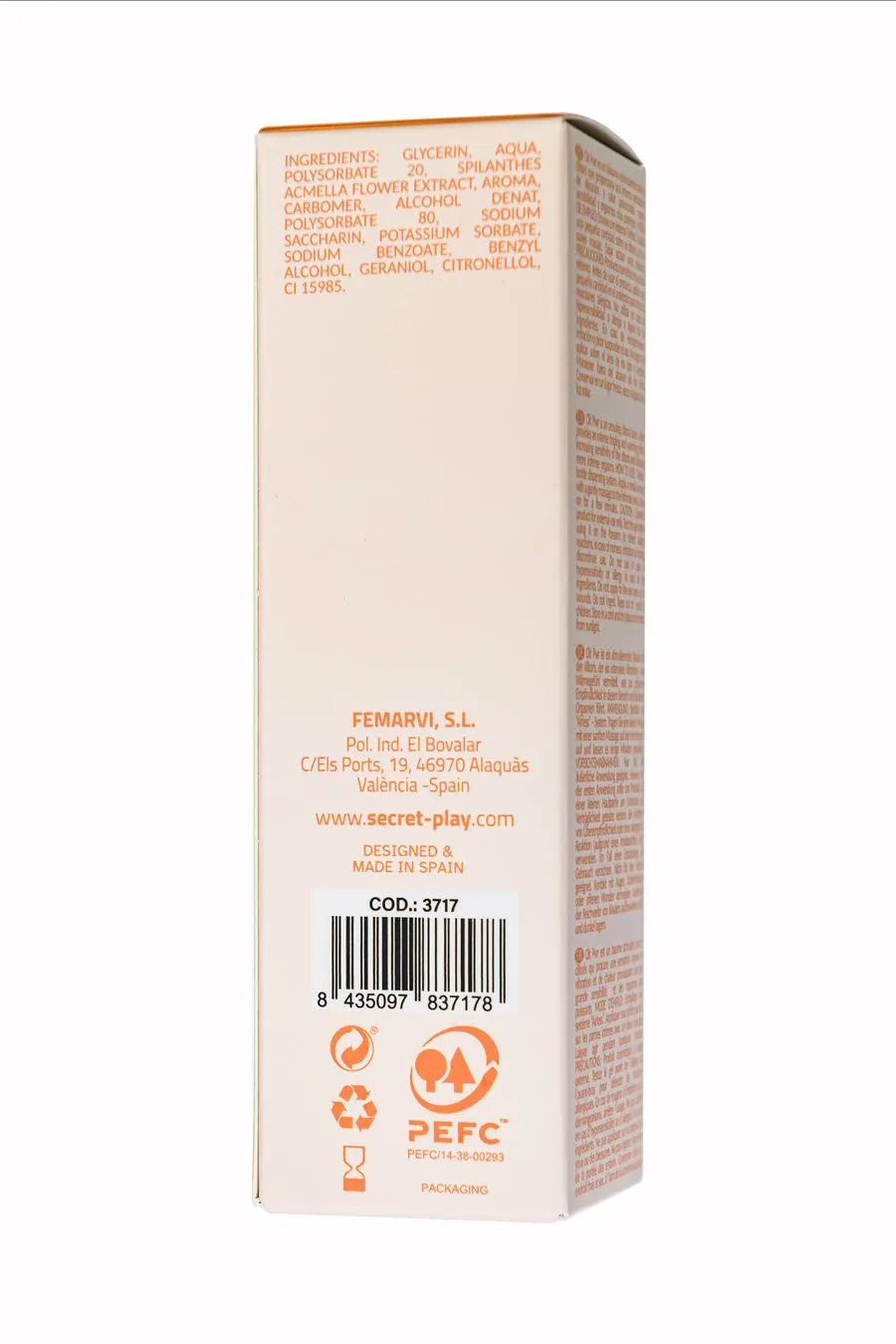 глицерин, вода, полисорбат 20, экстракт цветков спилантеса акмеллы, ароматизатор, карбомер, денатурированный спирт, полисорбат 80, сахарин натрия, сорбат калия, бензоат натрия, CI 14720