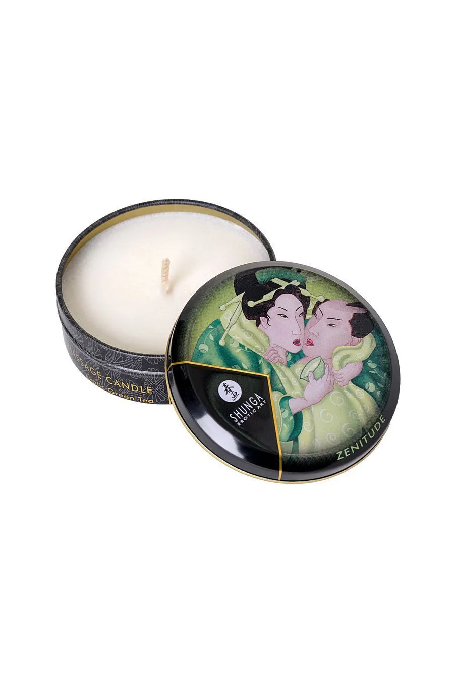 • Массажное аромамасло в виде свечи Shunga «Спокойствие. Зеленый чай»(Zenitude.Exotic Green Tea), 30мл Ароматизированная свеча, превращающаяся при горении в тёплое масло для массажа. Изготовленная из 100% натуральных масел (соевого, кокосового и миндального), она питает и смягчает кожу, не обжигая её. Идеально подходит для расслабляющего массажа с нежным ароматом, без токсичных добавок и парафина.