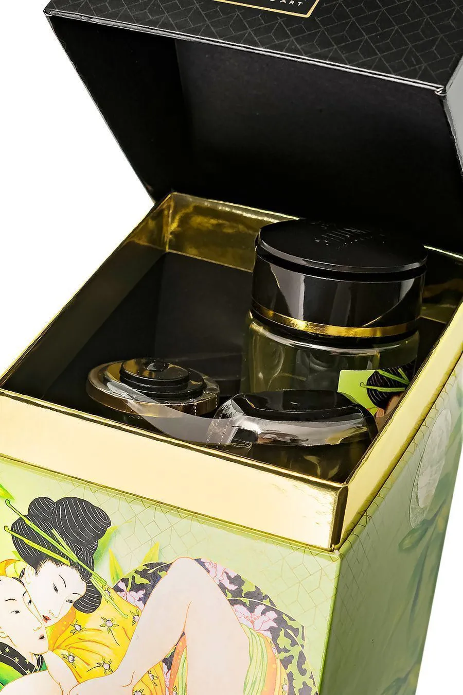 • Масло массажное для тела Shunga «Экзотический зеленый чай» (Exotic Green Tea), разогревающее, 100мл. Это согревающее масло с эффектом разогрева идеально для чувственных экспериментов. Нежный аромат и вкус зеленого чая активируются поцелуями и дыханием, даря ощущение тепла и страсти. Масло съедобно, подходит для использования на эрогенных зонах, делая прелюдию незабываемой.