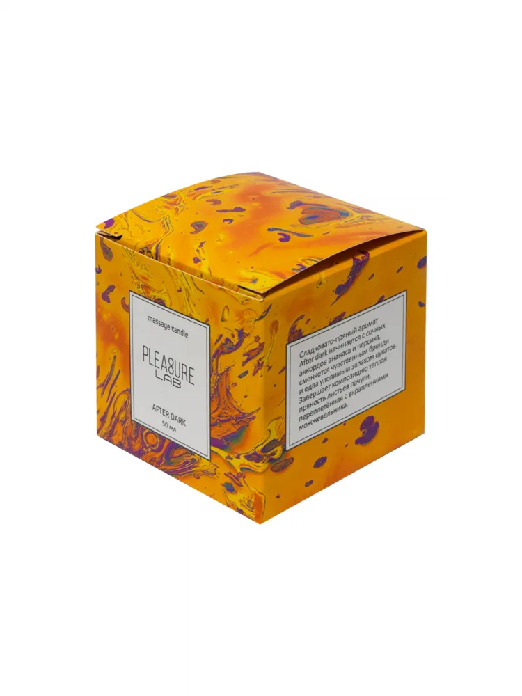 Массажная свеча Pleasure Lab - прекрасный проводник от легких заигрываний до страстного секса. За счет приятного аромата свеча дарит ароматерапевтический эффект, позволяет расслабиться и создать интимную атмосферу. Свеча After dark обладает чувственно-пряным ароматом с аккордами бренди. Cостав: натуральный соевый воск, натуральные масла: ши (карите), миндальное, кунжутное, виноградных косточек, ароматическая композиция и хлопковый фитиль. Способ применения: зажгите свечу и подождите 5-10 минут, пока расплавятся массажные масла. В это время вы можете наслаждаться её чудесным ароматом. Погасите пламя свечи и дайте ей остыть в течение нескольких секунд. Соевый воск плавится при температуре, близкой к температуре кожи, поэтому им нельзя обжечься. Теперь свеча готова к использованию. Нанесите немного растаявшего масла на руки, тело и можете начинать массаж. Время горения свечи - 5,5 часов. Условия хранения: хранить в темном месте при температуре от +7 до +20 градусов.