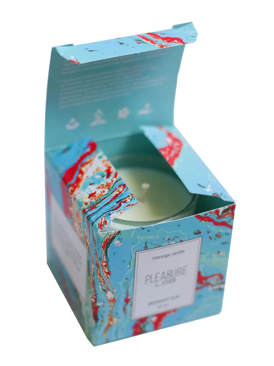 Массажная свеча Pleasure Lab - прекрасный проводник от легких заигрываний до страстного секса. Cвеча дарит ароматерапевтический эффект, позволяет расслабиться и создать интимную атмосферу. Свеча Midnight sun обладает освежающим и бодрящим ароматом с интенсивными нотами инжира. Состав: натуральный соевый воск, натуральные масла: ши (карите), миндальное, кунжутное, виноградных косточек, ароматическая композиция и хлопковый фитиль. Способ применения: зажгите свечу и подождите 5-10 минут, пока расплавятся массажные масла. В это время вы можете наслаждаться её чудесным ароматом. Погасите пламя свечи и дайте ей остыть в течение нескольких секунд. Соевый воск плавится при температуре, близкой к температуре кожи, поэтому им нельзя обжечься. Теперь свеча готова к использованию. Нанесите немного растаявшего масла на руки, тело и можете начинать массаж. Время горения свечи - 5,5 часов. Условия хранения: хранить в темном месте при температуре от +7 до +20 градусов.