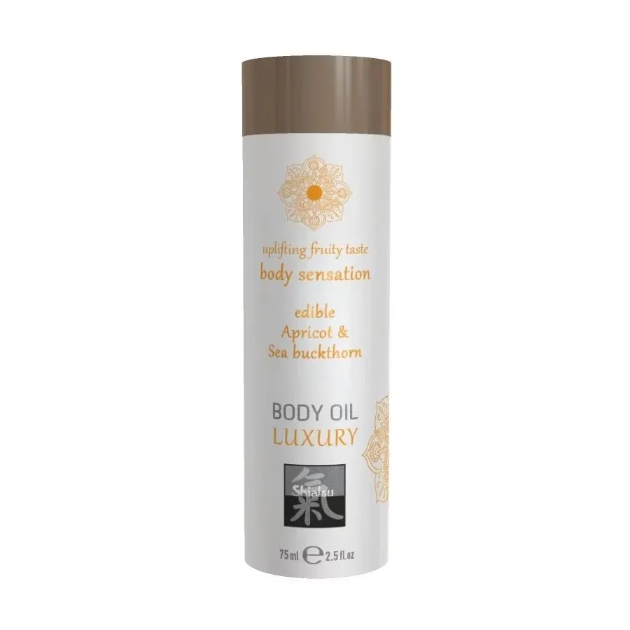 Ароматное съедобное масло от бренда Shiatsu обладает насыщенным вкусом абрикоса и облепихи, сладкий аромат которого возбудит Ваши чувства до предела. Нанесите масло на тело партнера во время сеанса массажа, а затем попробуйте его на вкус, уделяя особое внимание эрогенным зонам. Оно будет ухаживать за кожей, делая ее мягкой и шелковистой, а его нежная обволакивающая текстура подарит незабываемые ощущения.