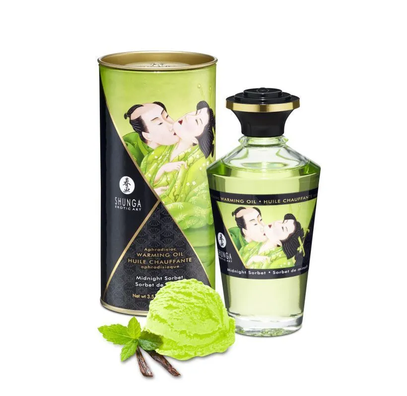 Съедобное масло "Полночный щербет" с афродизиаком от компании Shunga обладает приятным вкусом щербета. С ним тело Вашего партнера станет настоящим лакомством, а оральные ласки будут еще более возбуждающими. Входящий в его состав афродизиак заметно обострит ощущения, позволяя получить невероятное удовольствие от оральных ласк. Нанесите масло на кожу и слегка помассируйте этот участок, затем подуйте, чтобы добиться разогревающего и стимулирующего эффекта. Масло можно наносить на различные эрогенные зоны на теле.